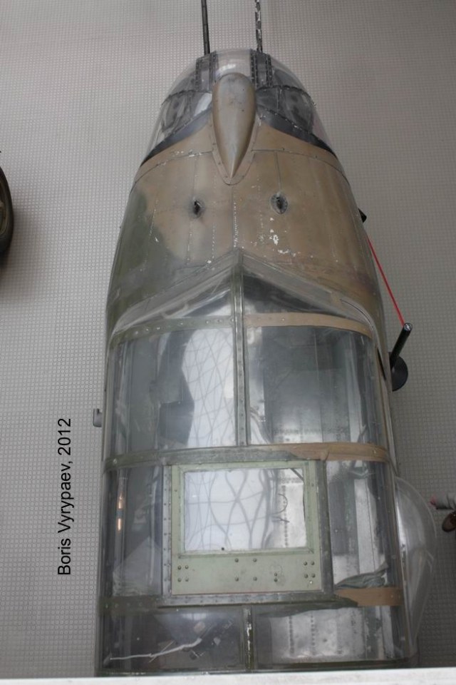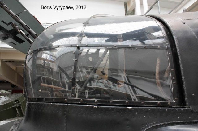 Срез закрыт стеклом, но всё-таки через блики видна внутренняя часть кабины