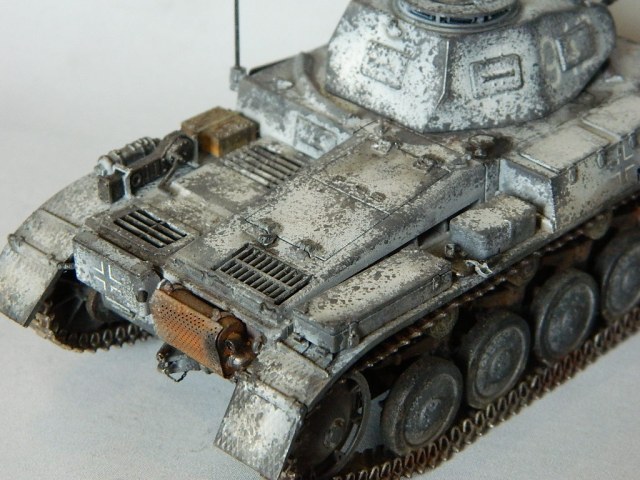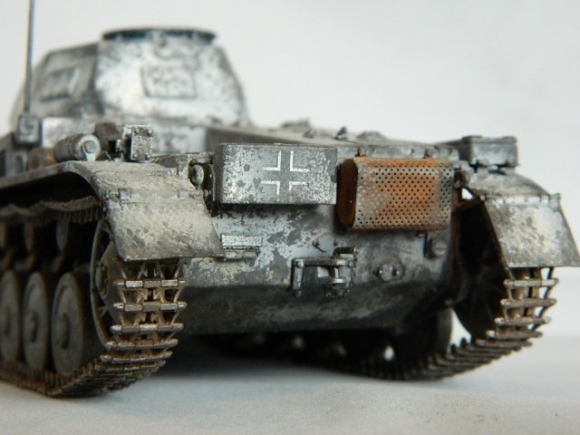 очень хорошо, но есть замечание, от белой краски мало что осталось, равномерно слетела по всему танку, если зимник такой убитый то вокруг люков "побелка" должна полностью вышеркаться, внимание на ком башенку сверху танкист должен был отшлифовать ее))) так же надо было выделить люк мто, у вас же протерты аж до металла передние углы башни и верх маски, как то не логично и еще надо было оставить места где белый остался в первозданном виде, это те места где краска не может стереться, всякие углубления, угол за башней к примеру.