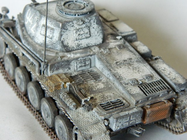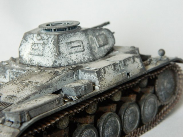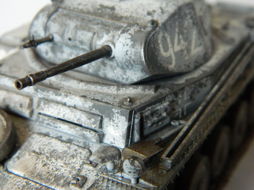 "Зимний" камуфляж получился великолепно. Но есть один большой вопрос по номеру на башне... Он белый. Если его нанесли после "побелки" - это абсурд, по белому были контрастные номера. Если он нанесён до - то вокруг цифр должны быть незаккрашенные части базовой окраски.