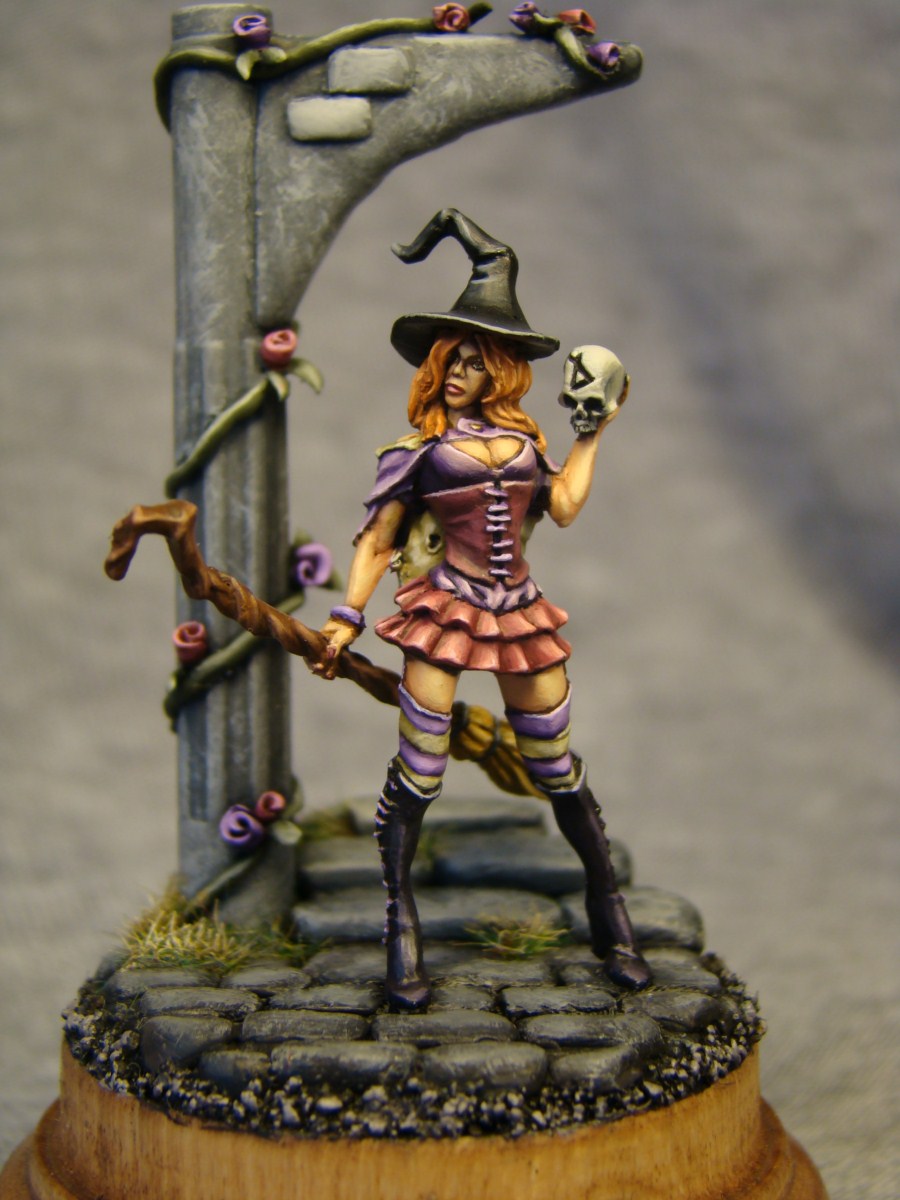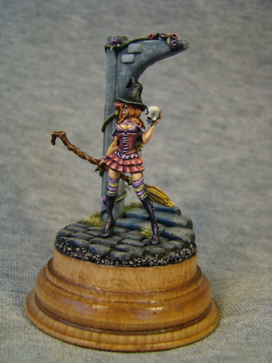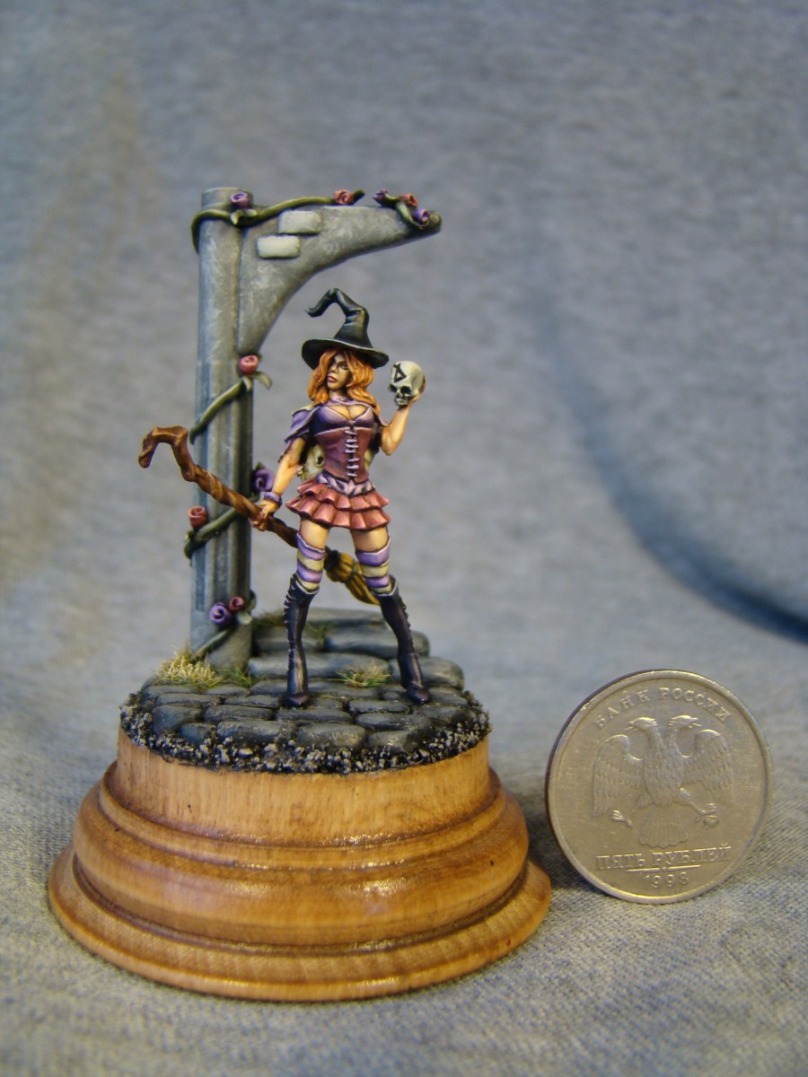 Gabrielle Lunardiente, фирма Tale of War. Размер 28mm. Арка, ступеньки, брущатка и розочки сделаны мною лично. Подставка-дерево. Как обычно жду комментариев и критики.