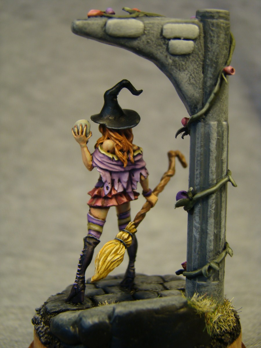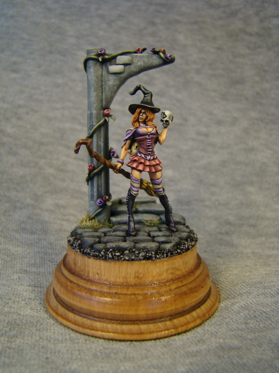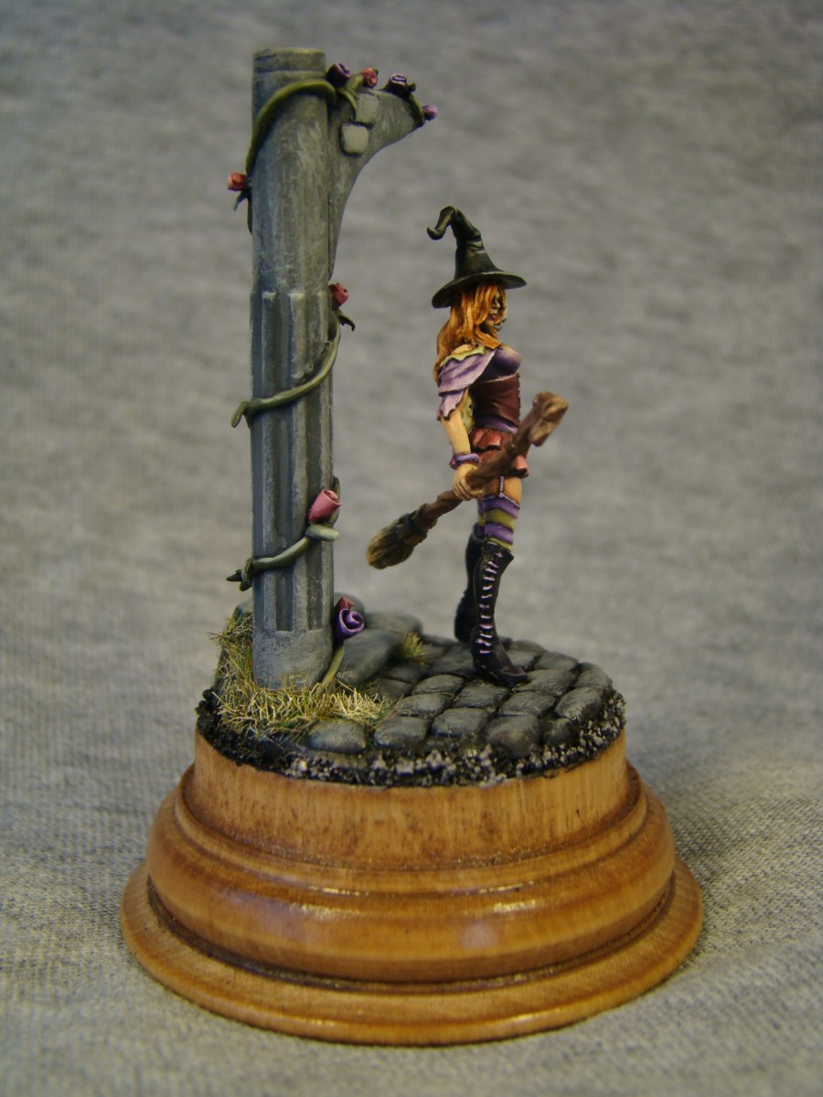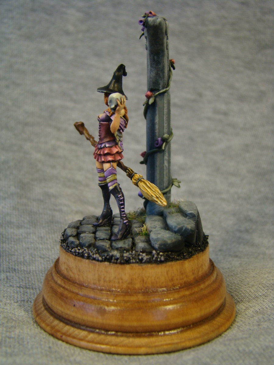 Gabrielle Lunardiente, фирма Tale of War. Размер 28mm. Арка, ступеньки, брущатка и розочки сделаны мною лично. Подставка-дерево. Как обычно жду комментариев и критики.