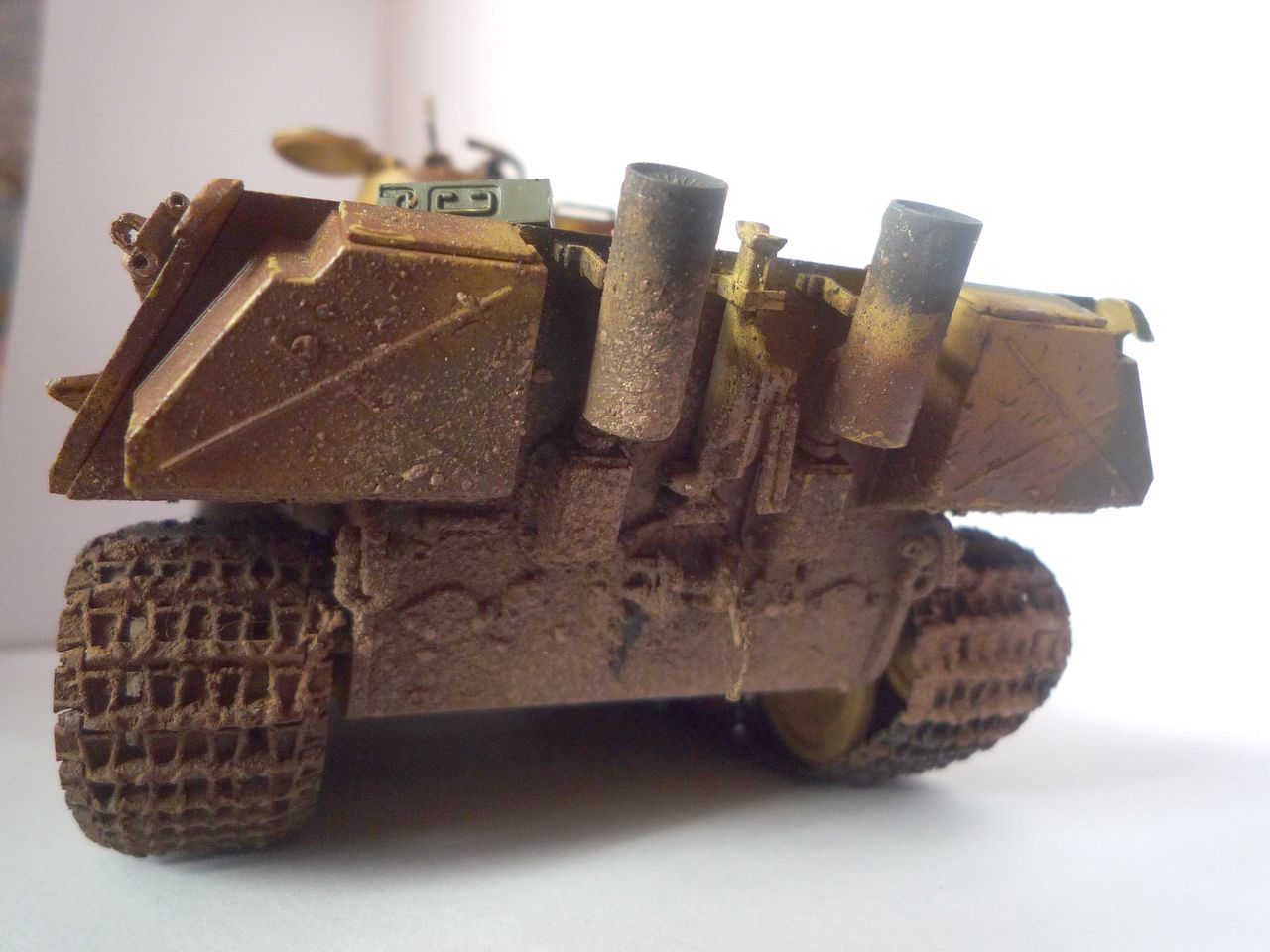 Работа понравилась. Но хочу заметить - если танк шёл по такой грязи, то и корпус танка должен быть более замызганым, особенно корма, она почти вся должна быть залеплена. И в траки грязь набивается. А у вас слишком чистый верх и гусянка получились.