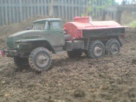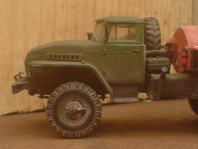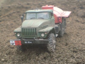 После чего была заброшена куда подальше из за нехватки времени и вдохновления. До недавнего времени. за все это время были утеряны зеркало и брызговики. зеркало сделал. брызговики с бортового урала. Модель дополнена фарами эльф, и самодельным отсеком с шлангами,окрашена красками тамия с аэрографа(первая окраска аэрографом) и пачкана пастелью.Лично мне загадинг не нравится. Да и вообще перерыв в моделизме дал о себе знать. и я не очень хорошо с этим справился.(поспешил,куда не знаю). Итак. обсуждайте. если не покатит,то переведу в песок. так как сам считаю это правильней.