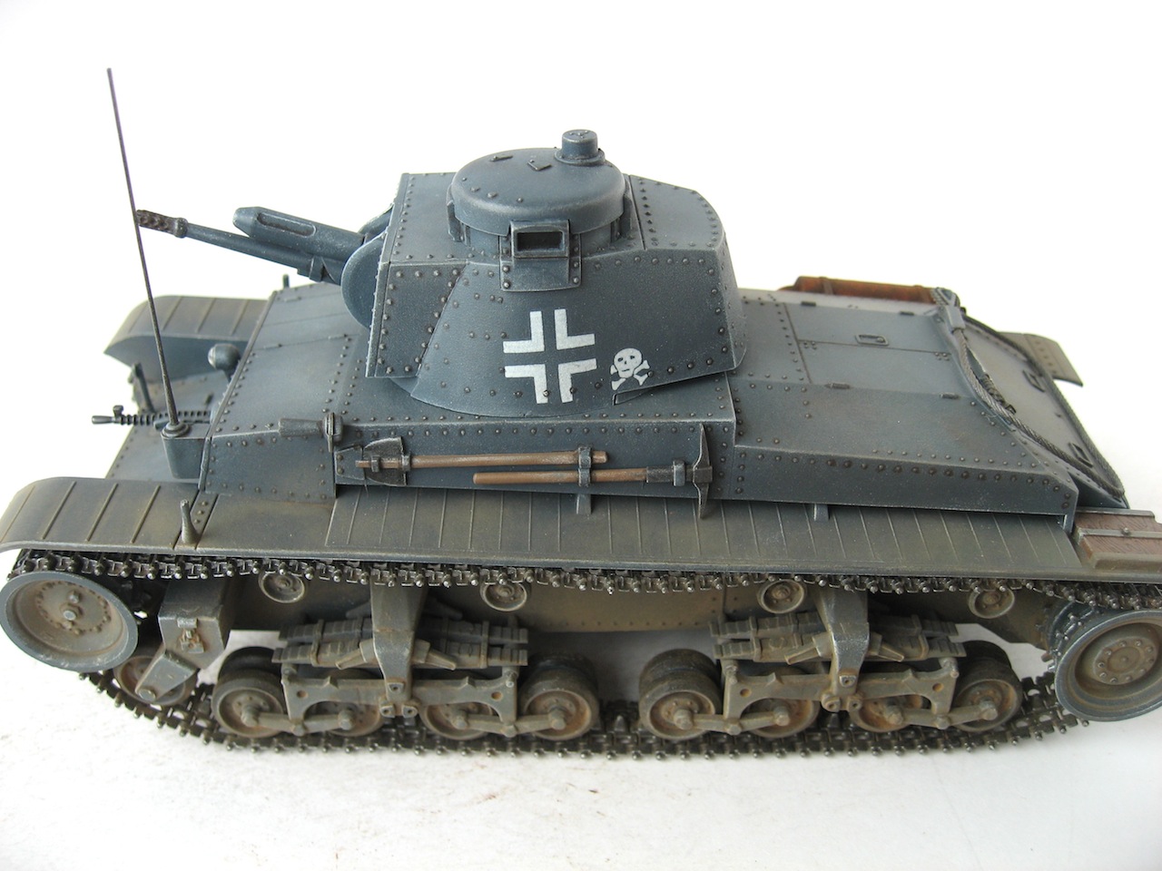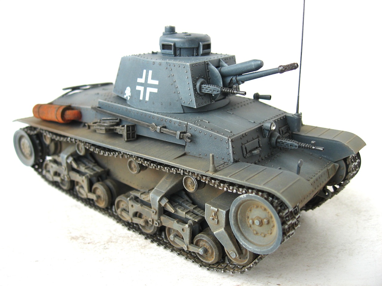 ...Отличный танк.Только помнится,что в середине "этой хреновины",напротив смотровой щели,должна быть дырка,а не ложка(как на 38Т),типа прицел.