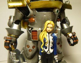 хрупкий пластик,красивая,но ужаснейшая фигурка из непонятной резины,с неубиваемыми швами(как результат ноги стерты в несколько мм и восстановлены при помощи шпатлевки)