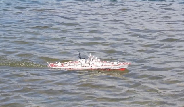 Интересная модель. Что действующая, это вообще прекрасно. На мой взгляд, если доработать вертолёт, то на стенде, модель смотреться будет лучше. Понятно, что "боевые" повреждения на соревнованиях но, может быть леерное ограждение заново спаять. Особенно по левому борту. Жаль, что много нерезких фотографий. Не на мобильный, случайно, снималось? Хорошо бы побольше фотографий на воде, в родной стихие.