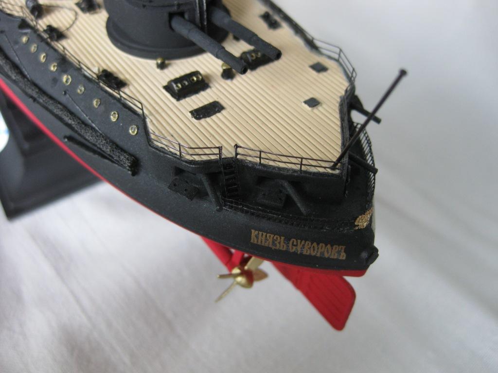 А вот видимые элементы корабля, исполненные в модели в корне не верно, вызывают у меня вопросы. В целом модель только походит на ЭБР "Князь Суворов" и не более. Это вдвойне обидно, поскольку автор провел действительно большую работу по доводке исходного материала, но ряд грубых неточностей сводит, на мой взгляд, на нет эти усилия.