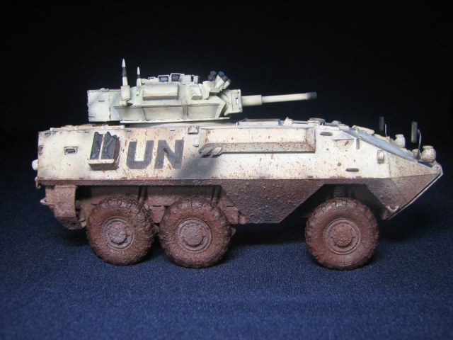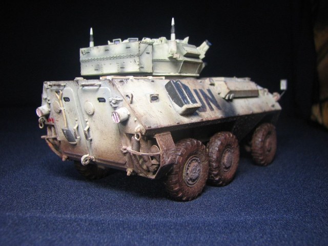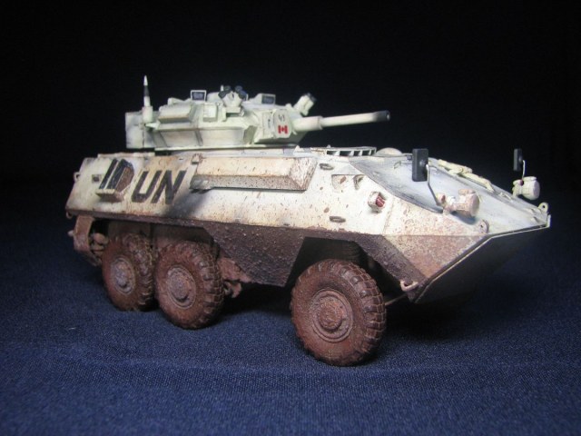 Прототип данной модели - машина - участник миротворческой миссии в Боснии (UNPROFOR). Сборка - изкоробка, попытался доработать фары (один черт помутнели) и поставил зеркала заднего вида, потому что родные потерял. Окрашено тамией, тонировка маслом из Питера, грязь - MIG. Опознавалки от руки.