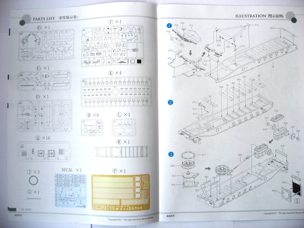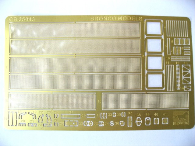 Бронковский набор очень большой. Здоровая коробка, много литников(даже считать не стал). На отливках, какие смотрел, не обнаружил ни облоя, ни следов толкателей на лицевых поверхностях. Пластик чуть жестче чем у Тамии. Глянцевая инструкция-целый журнал. Весь переснимать, по-этому, не стал. Наборные траки без следов толкателей. Ствол и пламегаситель нормального качества, мет.ствол можно не покупать. Травленые сетки на борта - это главное, потому-что пластик на этом виде техники смотрится плохо.