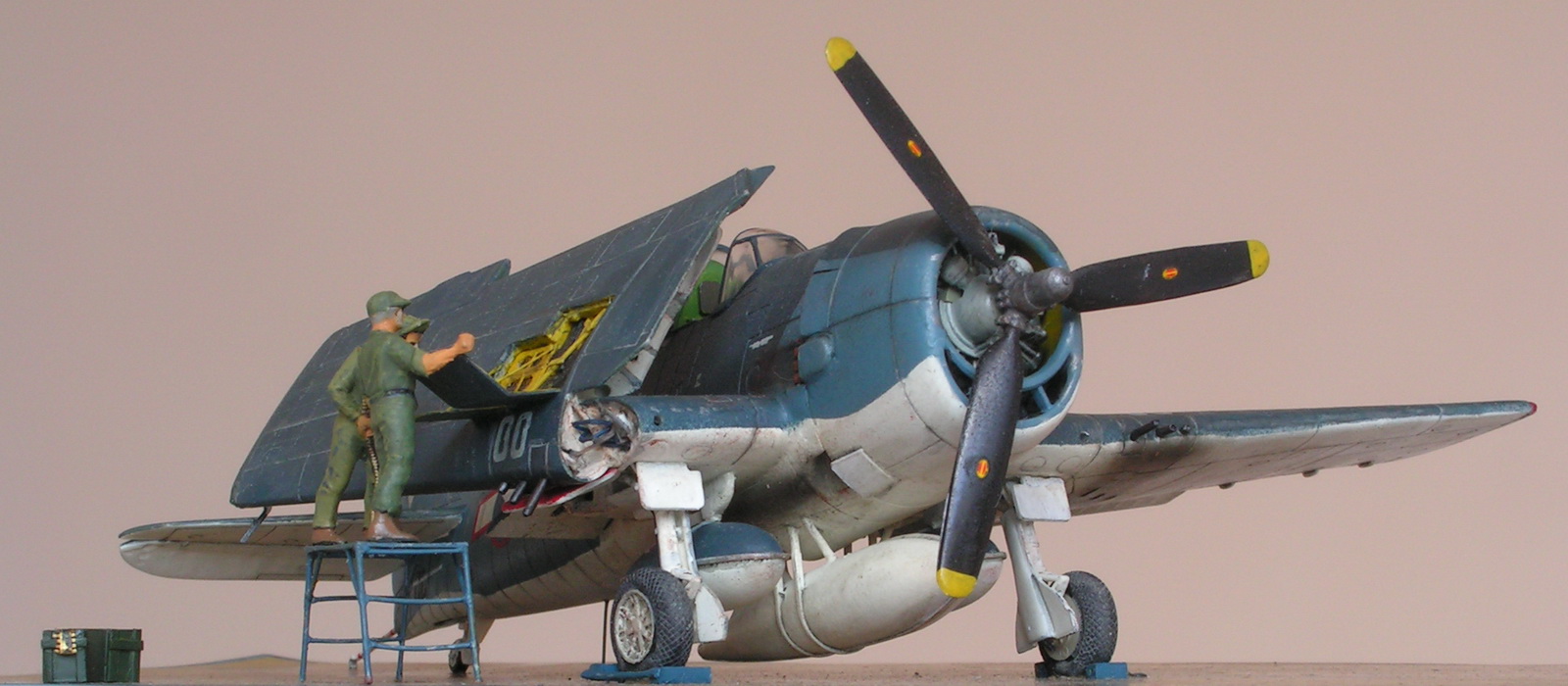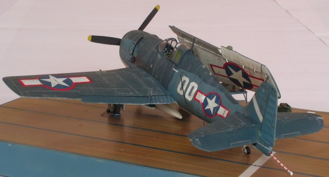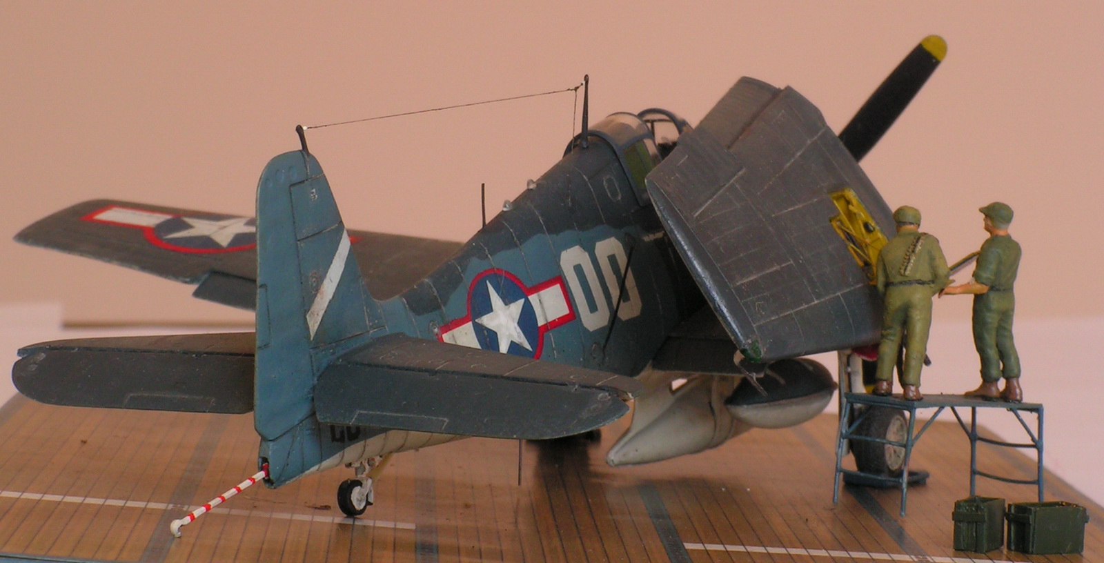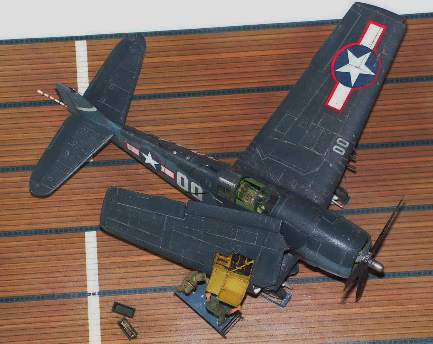 Так это вам скорее в раздел "диорамы"! Работа понравилась, но есть вопрос по матчасти. Насколько знаю, механики на авианосцах даже в войну тщательно следили за состоянием самолетов. Что, кстати видно и на приложенной Вами фотке. А у Вас самолет какой-то уж больно грязный и ободранный.