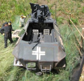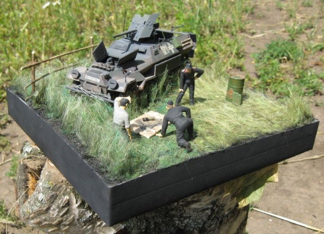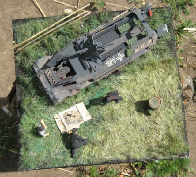 Огромное спасибо за критику! По некоторым пунктам отвечаю. 1) Рыжий ганс - это от солнечного света. На диораме он шатен. 2) Это не граната. Пытался сделать какую-нибудь деталь двигателя... не получилось... P.S.: По Вашим комментариям понял, что многое я не продумал, кое что не получилось из-за нечеткости фотографии. Спасибо за критику!