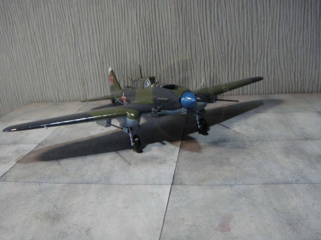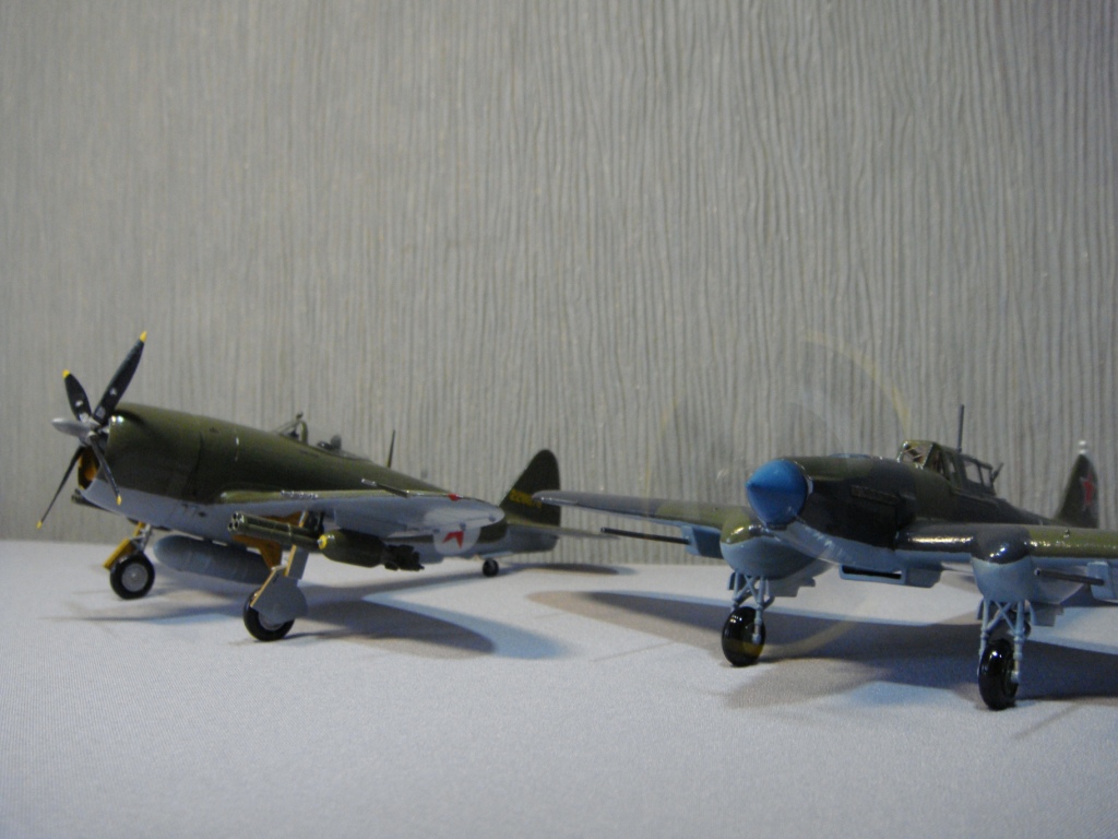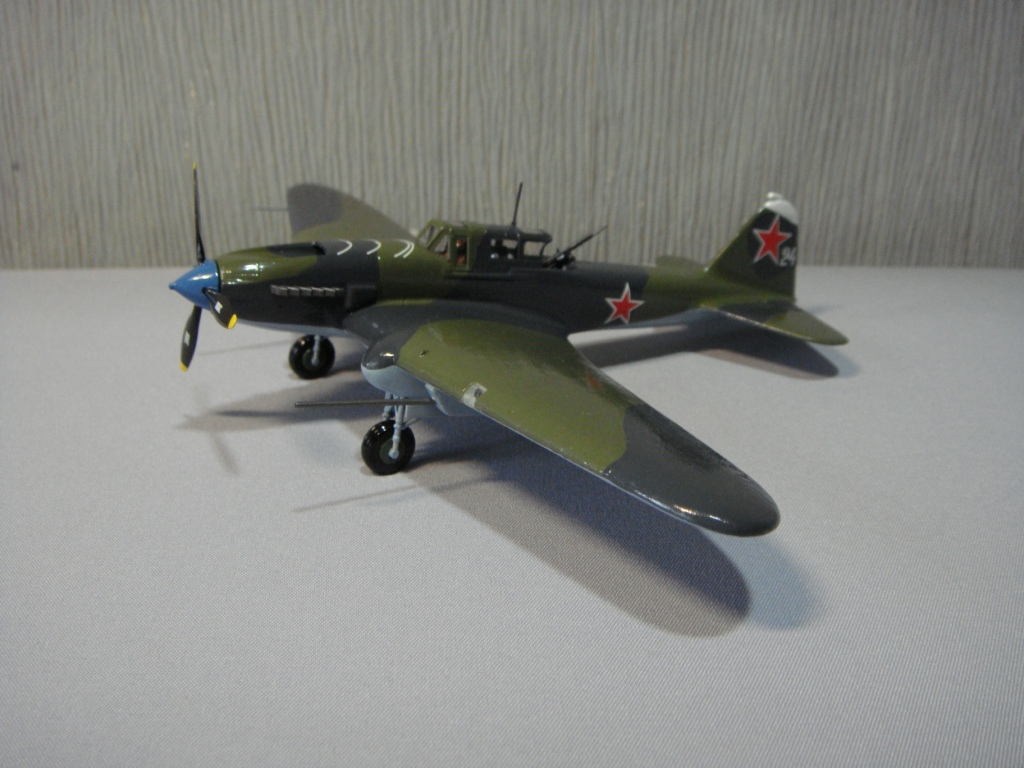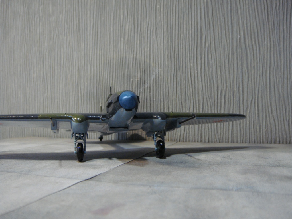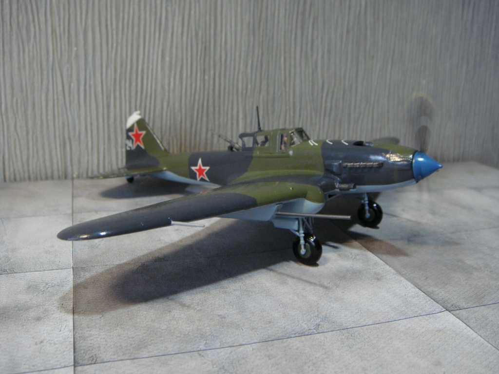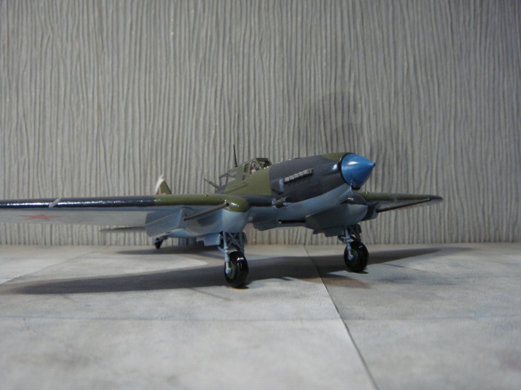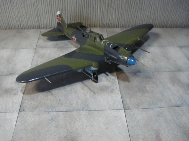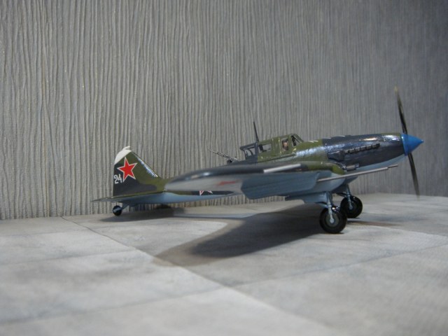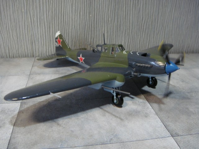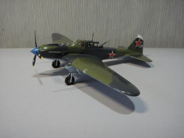 На сборку этого самолета меня вдохновил ряд репортажей о восстановленном в Новосибирске Ил-2, который был восстановлен до полетного состояния, и был вывезен затем в американский музей военной авиации. Неизвестно, насколько реставраторы попали в цвета вследствие отсутствия цветных фото 40-х годов с высочайшим разрешением цифрового качества, но покрасили они очень аккуратно, очень старались попасть в цвета! В плане исторической привязки реставраторы объединили два в одном «Белая пилотка на киле - в военные годы знак принадлежности к 298-й авиадивизии. Голубой кок - как в 198-м штурмовом авиаполку. Такой окрас для отреставрированного штурмовика выбрали не случайно. Это в память всем летчикам, которые летали на Ил-2». Еще реставраторы совсем позабыли о прицельных дугах сверху капота. Единственное, что трудно понять, принимая во внимание широкую доступность и совершенство современных авиатрафаретов, это – отсутствие патриотических надписей на борту, знак «Гвардия» тоже бы смотрелся очень даже в тему… Наверное, добавлю.