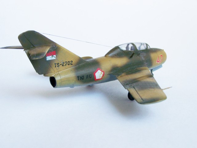 По поводу пилота решил, что раз место обучаемого впереди, то пилота для одиночного полета следует сажать назад - видимо ошибся, не знал о ньюансах центровки. По поводу бортовых номеров - на индонезийском варианте они то же двух значные, красные с окантовкой, но меньше по размеру чем те которые на модели. Т.к. модель не имеет исторической привязки ЗШ-7 вполне в тему. Антена толстовата, но переделывать уже не буду, пускай остаётся как есть, учту при последующих сборках.