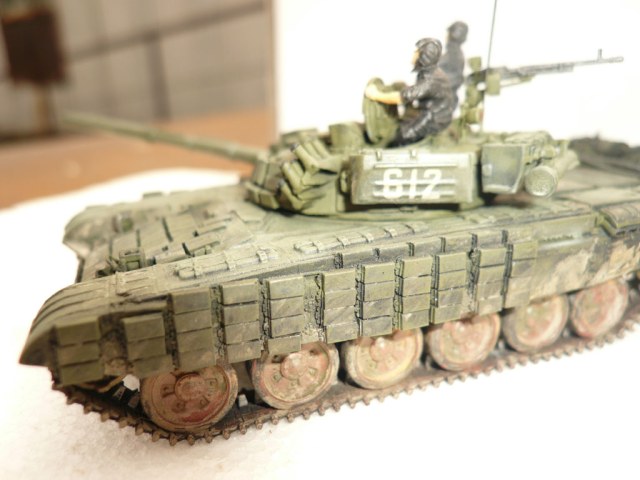 Приветствую Михаил, отличная вышла работа! Очень эстетично смотрится контакт, да и весь танк все цело. За историческую привязку отдельный респект. Возник вопрос по поводу модификации. На сколько я слышал, то сей полк был вооружен именно Т-72Б(с соответствующим комплексом управляемого вооружения) а не вариантом Б1