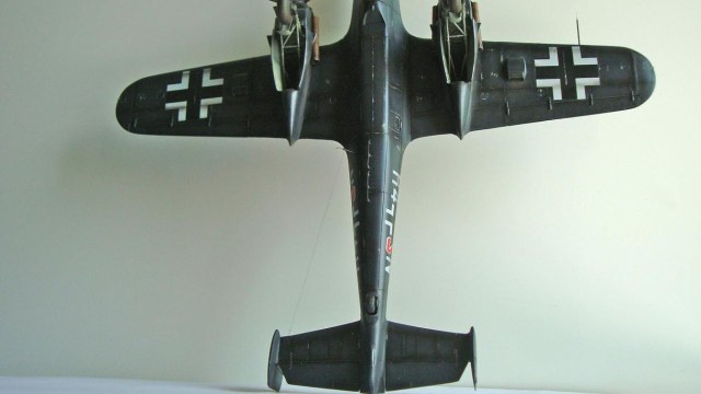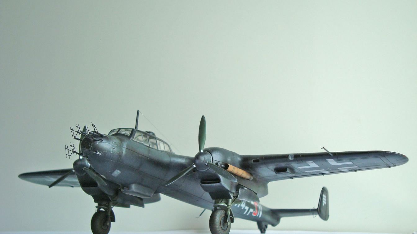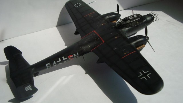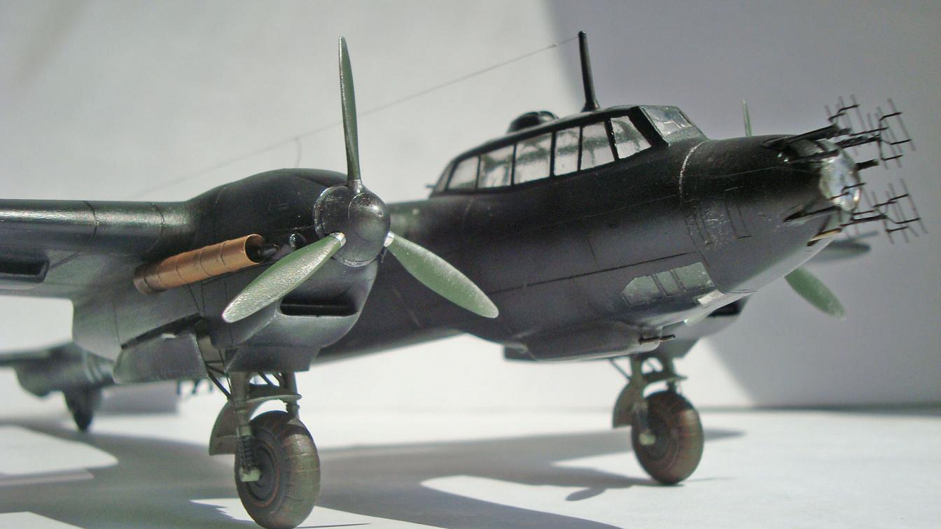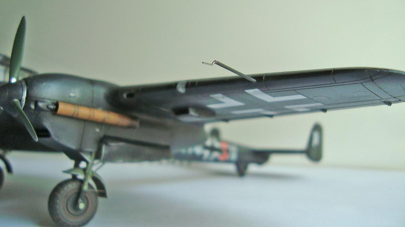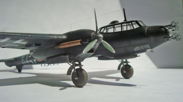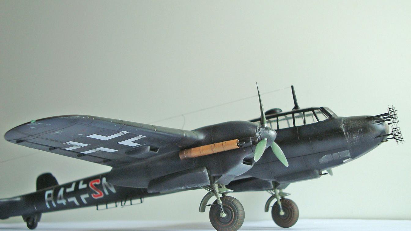 Изначально был план соорудить бывалый ночник, поэтому помощниками были пред-постшейдинг, сухая кисть для имитации сколов и облезлостей. Попытка изобразить машину одного из лучших немецких асов - Гилднера, который к сентябрю 41-го имел 33 победы (Всего за время боевых действий совершил ок. 160 боевых вылетов и сбил 48 самолетов противника, в т. ч. 44 ночью и погиб в 43-м )
