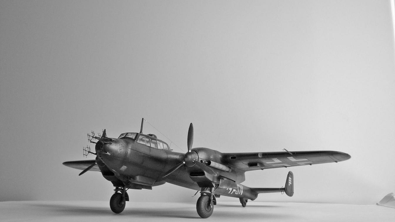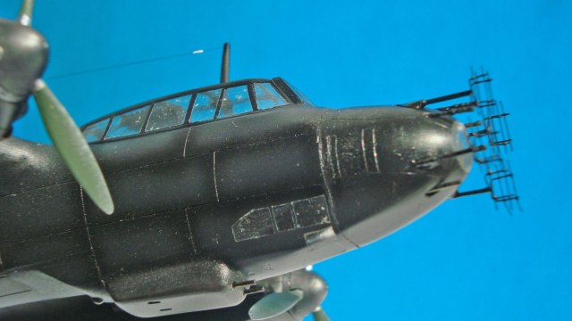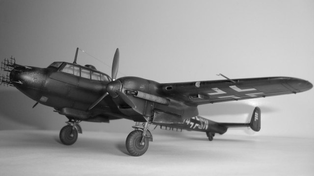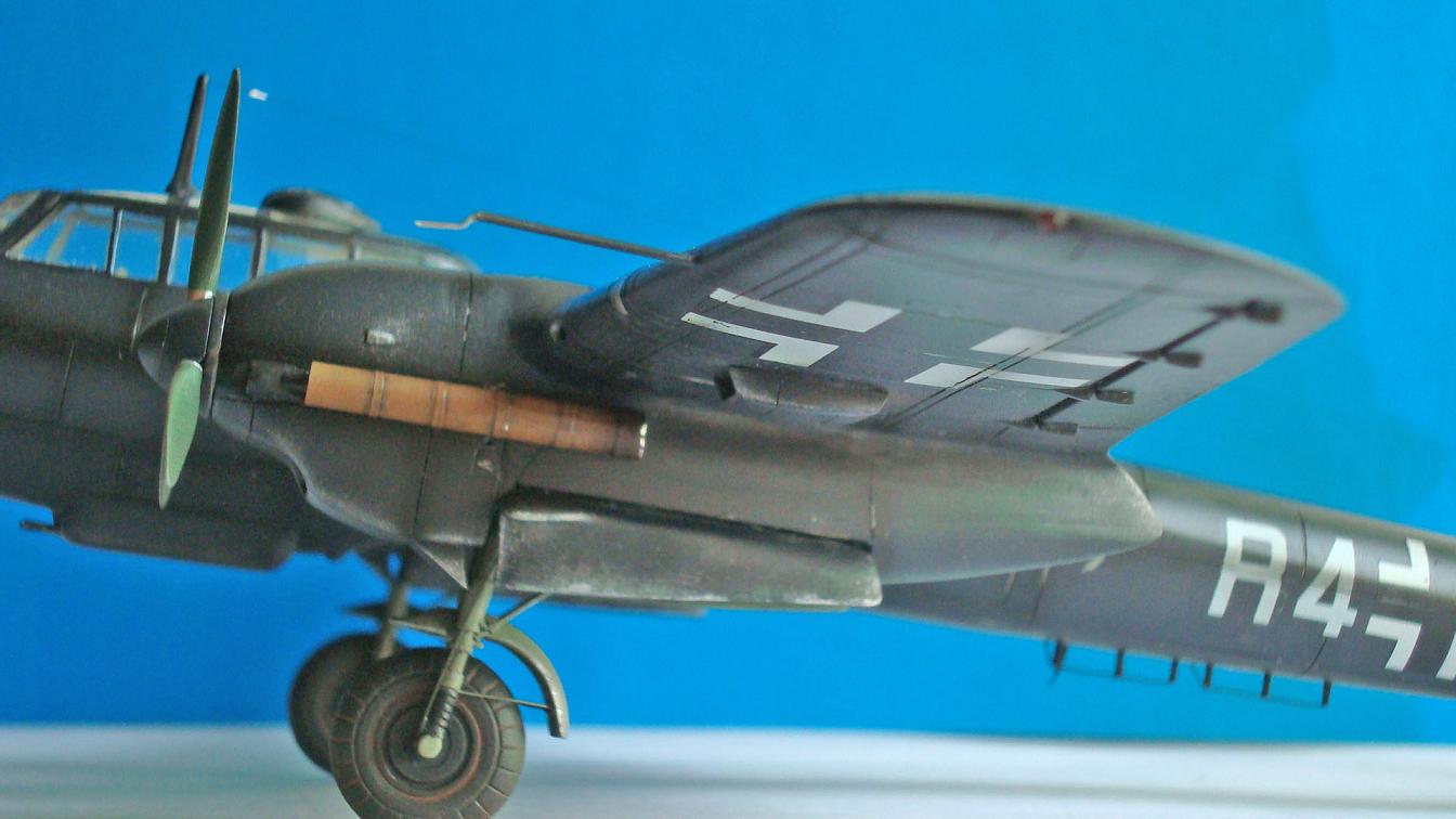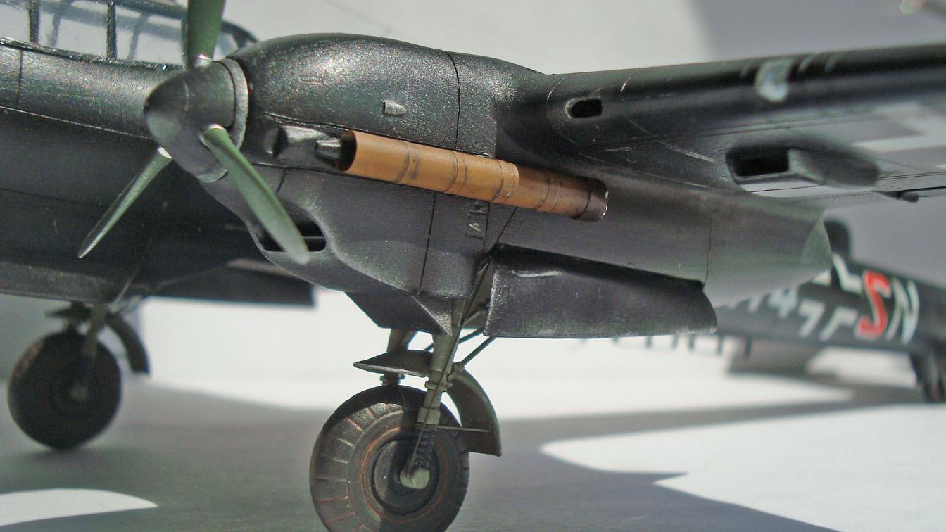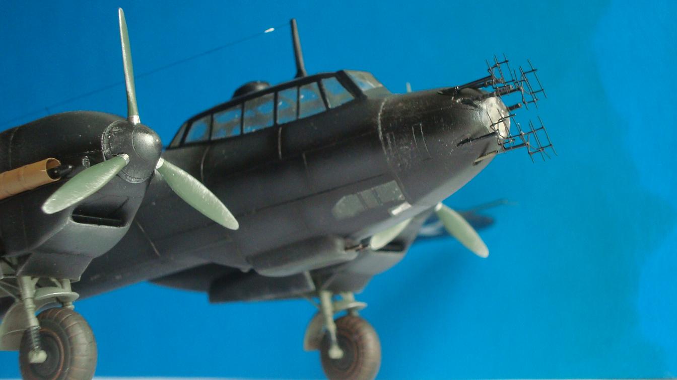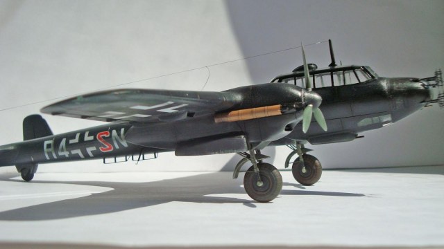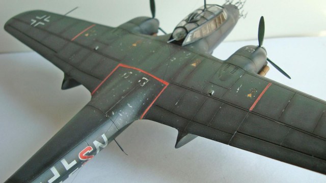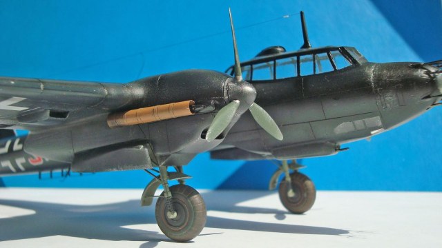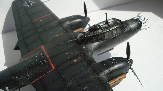 Изначально был план соорудить бывалый ночник, поэтому помощниками были пред-постшейдинг, сухая кисть для имитации сколов и облезлостей. Попытка изобразить машину одного из лучших немецких асов - Гилднера, который к сентябрю 41-го имел 33 победы (Всего за время боевых действий совершил ок. 160 боевых вылетов и сбил 48 самолетов противника, в т. ч. 44 ночью и погиб в 43-м )