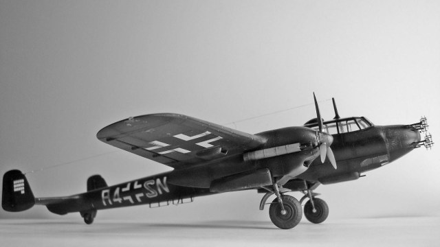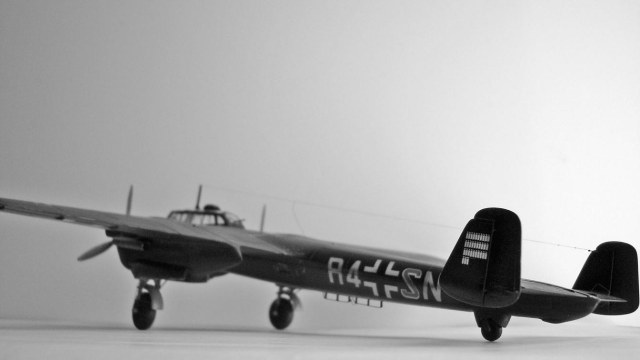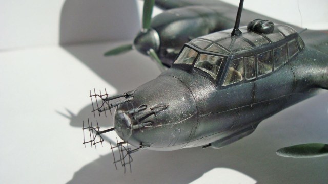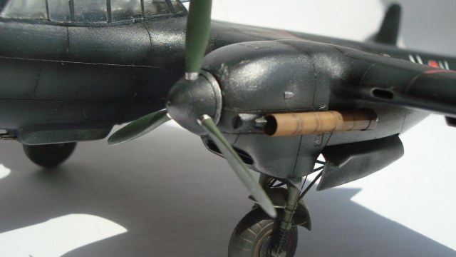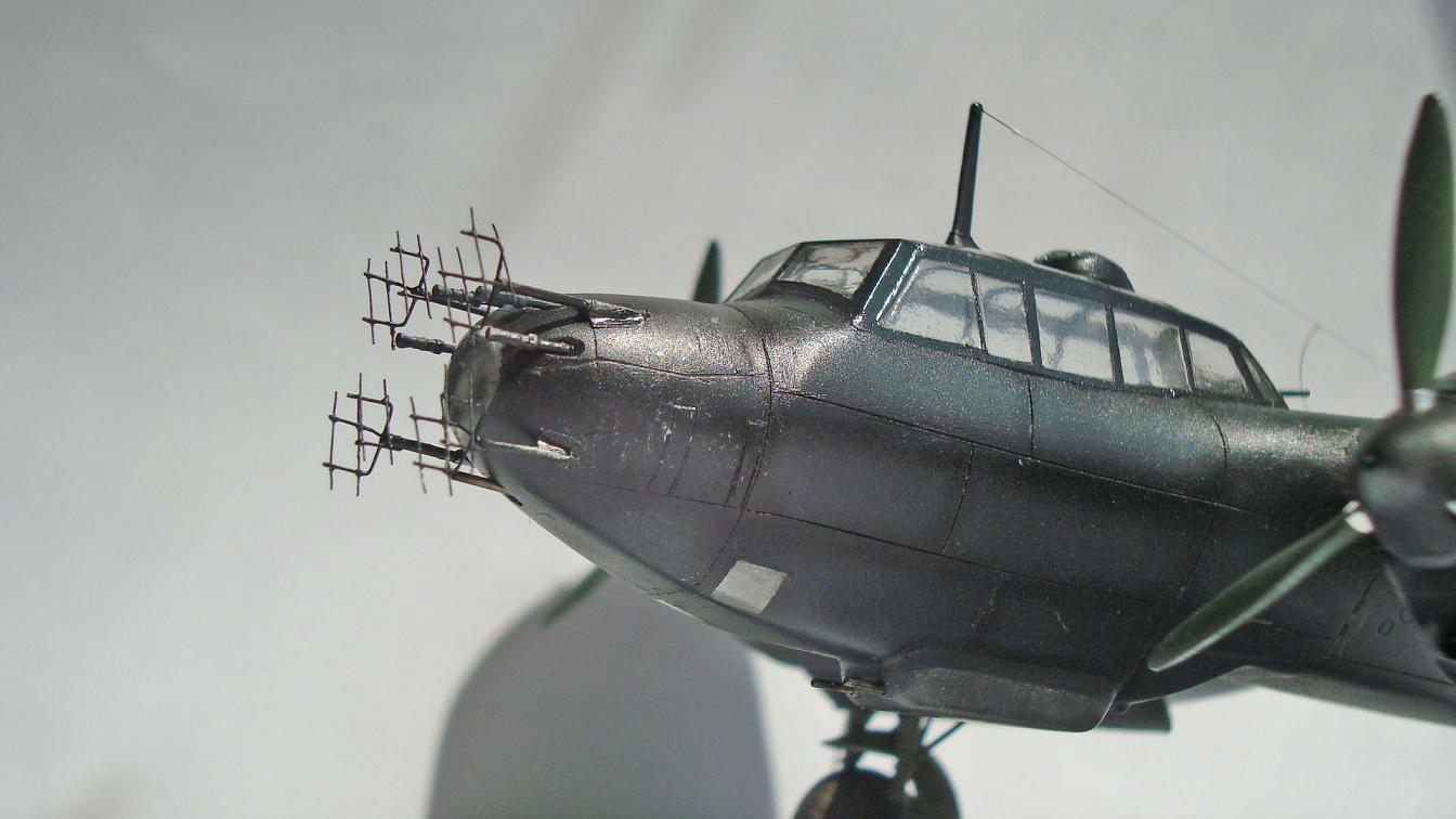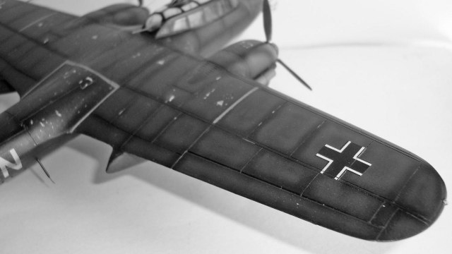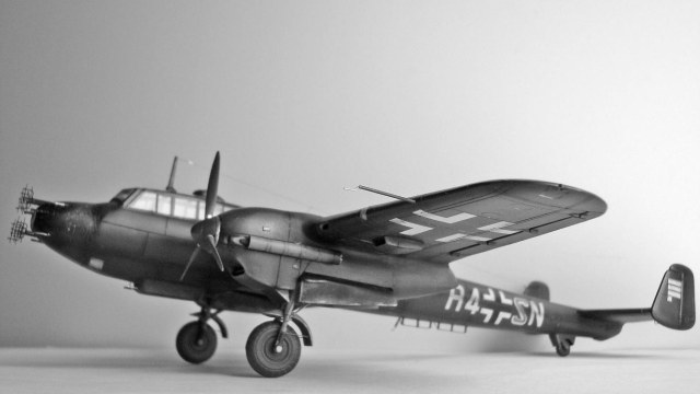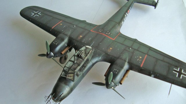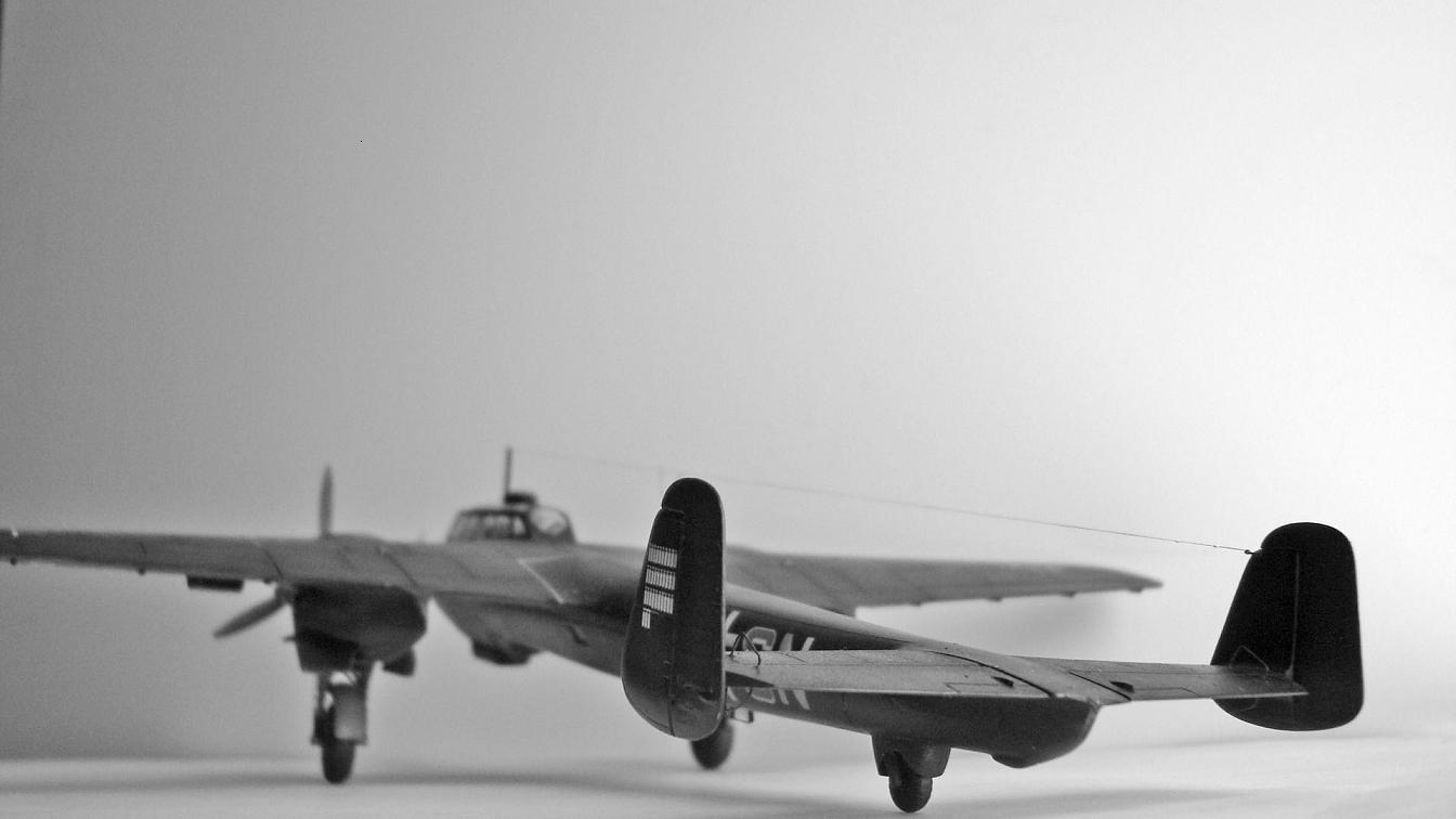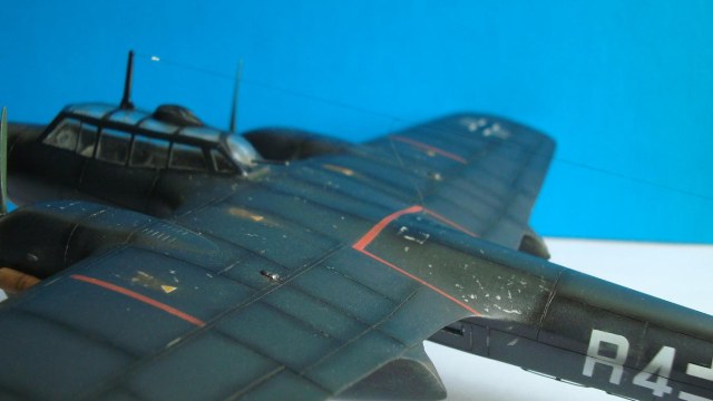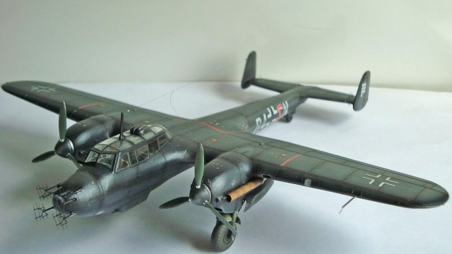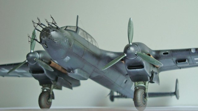 Изначально был план соорудить бывалый ночник, поэтому помощниками были пред-постшейдинг, сухая кисть для имитации сколов и облезлостей. Попытка изобразить машину одного из лучших немецких асов - Гилднера, который к сентябрю 41-го имел 33 победы (Всего за время боевых действий совершил ок. 160 боевых вылетов и сбил 48 самолетов противника, в т. ч. 44 ночью и погиб в 43-м )