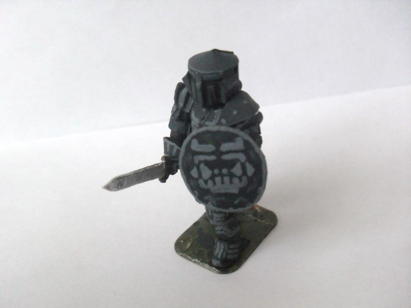 Выкладываю на ваш суд мою первую покрашенную самодельную миниатюру Легионера из игры Dragon Age. Каркас из рук и ног которые уже не могут быть восстановлены и соответствовать действительности (расплавленные, распиленные и жутко испорченные мною в 11 лет первые модельки :) ). Броня и вся амуниция из картона. Красил красками от звезды (при помощи кисти и зубочисток). Клей момент(жидкий).