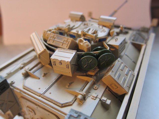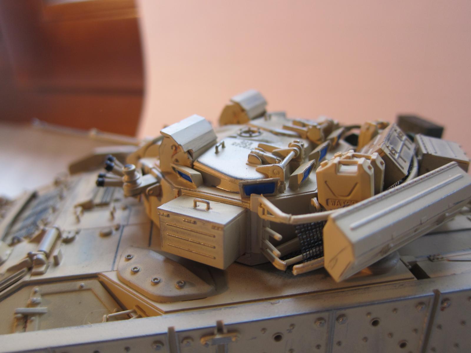 День добрый, Павел! Работа - хорошая, "смотрибельная", отлично смотриться "песочная" запылённость (особенно в стыках и углах): правда есть несколько "мелочей" на общее впечатление не влияющих, но всё же: внутренняя часть гусениц (как правило чистая - без песка), если уж у Вас есть прилипшая грязь внизу, то вполне вероятно, что и где нибудь на броне можно было её "разбросать", а то получается маленький дисонанс: низ грязноват, верх - чист. У Вас не хватает двух "рогов" антенн и двух штыревых, над "жизненностью" триплексов можно было бы поработать, корзина на башне требует "стыкуемости" (знаю, что сложновато, но можно сделать, сам делал такую модель год назад), огнетушители по- моему всё же красные. Фото Вы снимали в основном сблизи и облически - можно было чуть дальше (чтобы резкость всё перекрывала все детали