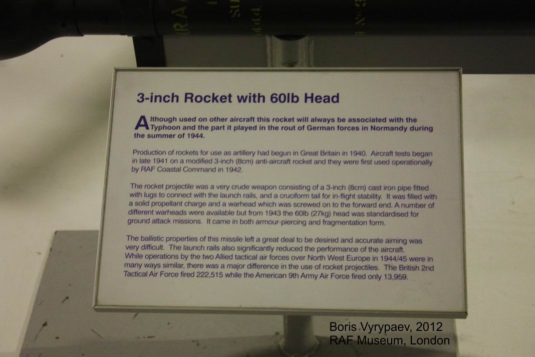 Несколько фотографий английских трёхдюймовых НУР времён Второй Мировой, с разными БЧ