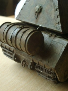 Красивая бандура. Масса танка чувствуется. Хоть фото по стандарту - Г, но по ним все равно можно понять, что модель достойна галереи. По внешнему виду этот танк прошел не одну войну и камуфляж перекрашивали раз 20 - оттого и толстым слоем лег. Для альтернативной истории в самый раз