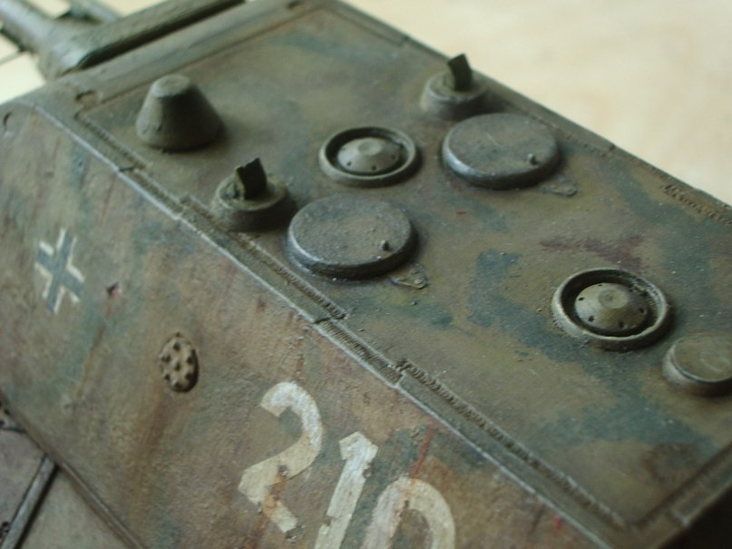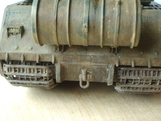 Ну и еще такой момент. Вы говорите, что установили модель двигателя с трансмиссией. И закрыли эту красоту. Можно было вырезать крышки, чуток поработать с покраской и деталировкой- и модель сразу бы смотрелась на порядок выигрышней и интересней. Не каждая модель Мауса иммет "нутрянку". Что понравилось- так то, что не забыты Вами задние буксировочные рымы, шланг от доп.бака и антенны - их мало кто вообще воспроизводит.