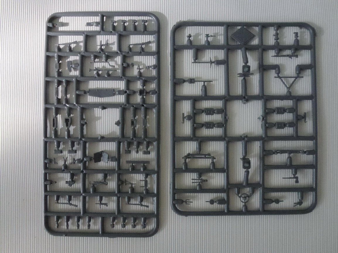 Мягкая коробка классического для Асе дизайна....в ней застегивающийся пакет с литниками и декалью.....5 больших плат и одна маленькая с колесами....гуси РЕЗИНОВЫЕ в отличие от травленых ранее....дека на 3 машины...темный пластик...есть облой и т.д. и т.п.