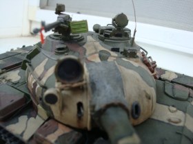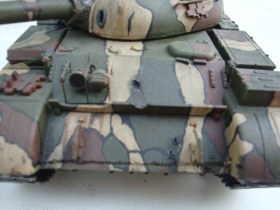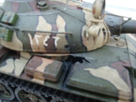 Повреждения нереально выполнены. Виден шов на половинках башни. Ствол орудия толстый слишком, даже для 125мм.