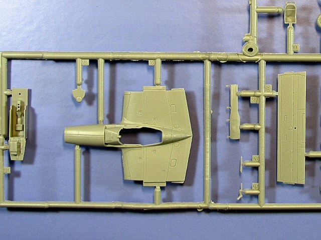 Состав набора: шесть литников с деталями + два прозрачных литника с фонарем и передним "коком навигатора", небольшая платка фототравления, декаль.