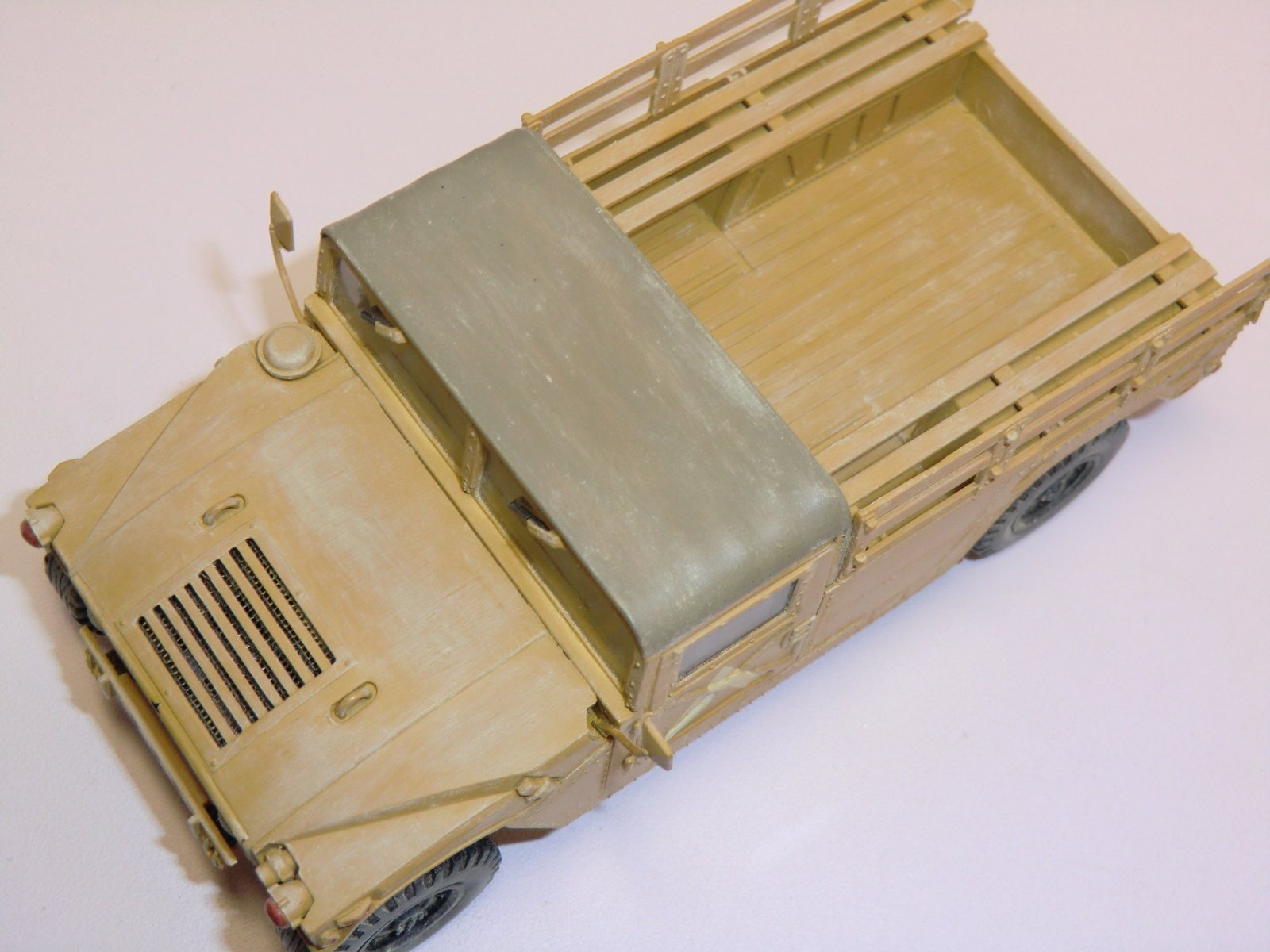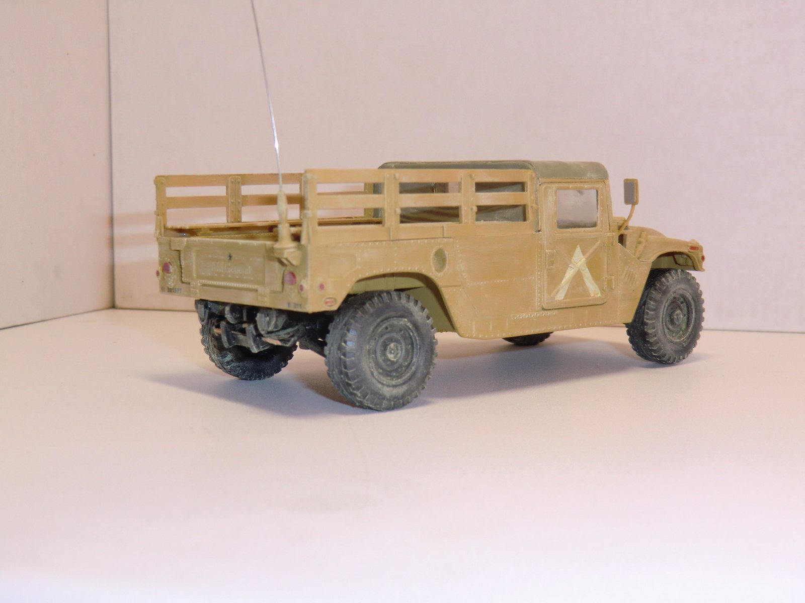 Красил кистью краски Revell, Tamiya, Акан. Основной цвет акрил от Revell (Sand yellow matt 16) как утверждали в такой цвет янки окрашивали технику во время операции "Буря в пустыне". Но после полного высыхания краска стала ярко-жёлтая..!? даже близко не похоже на оригинал(.