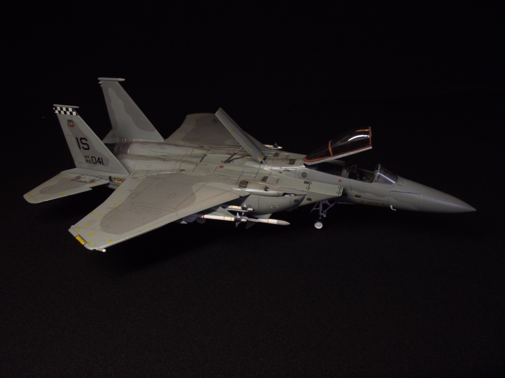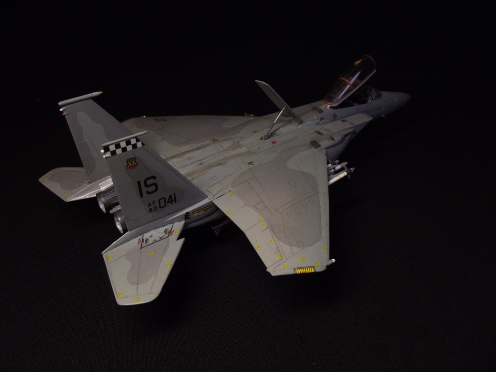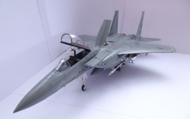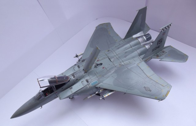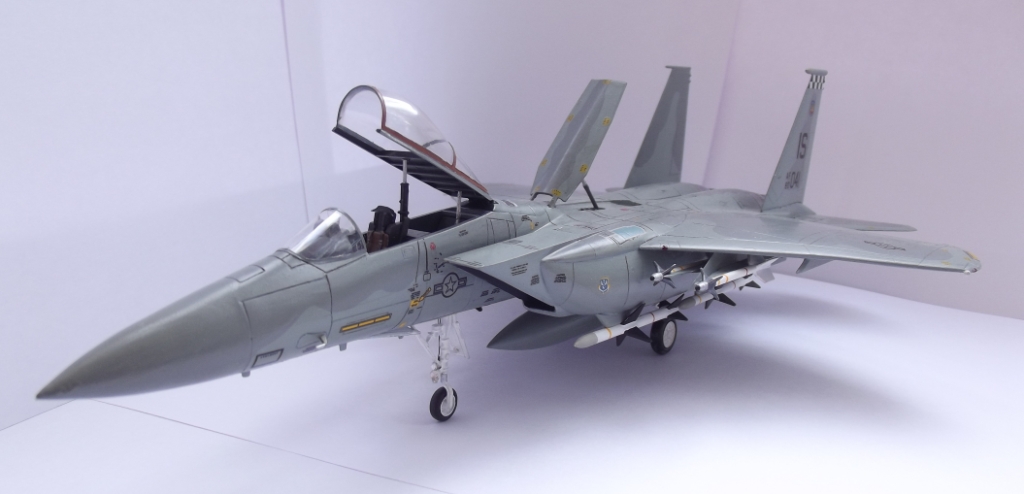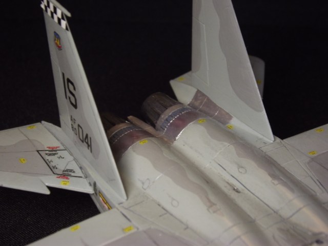 Собирать данную модель было приятно, хотя и не легко. Расшивка фюзеляжа хоть и была внутренняя, но местами слегка намеченая. По-видимому пресс-формы пора уже почистить. Хотя на крыльях она была вполне сносной. Вооружившись скрайбером и линейкой попытался привести расшивку в порядок. Что из этого получилось, судить Вам. Стыковка потребовала к себе повышенного внимания и определенного количества шпаклевки. Так как фонарь предполагал сделать открытым, впервые попробовал сделать ремни из тамиевского скотча на кресле пилота. Из страз сделал посадочные огни, а из медной проволоки имитацию проводки. Имитацию нагара изобразил тенями. Навигационные огни - тамиевский цветной лак. Расшивку выделил акварелью. Декали наносил на глянцевый лак, используя тамиевскую жидкость. Надо признать хорошая штука!Финишировал тамиевским полуматовым лаком, отметив для себя, что балончика хватает всего на четыре модели.