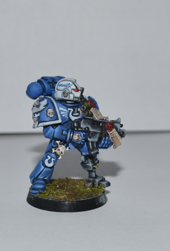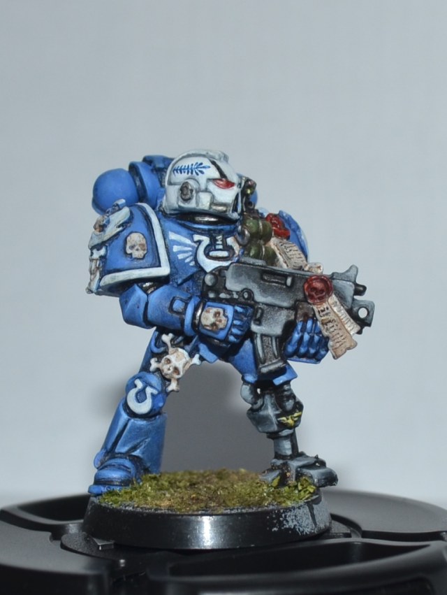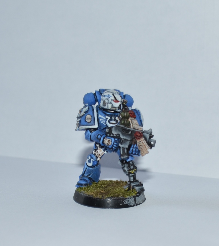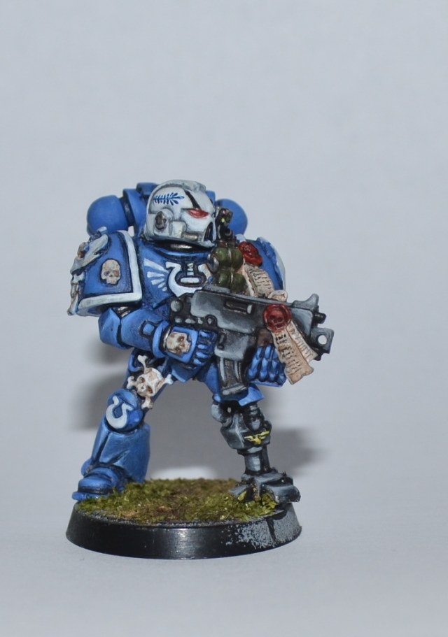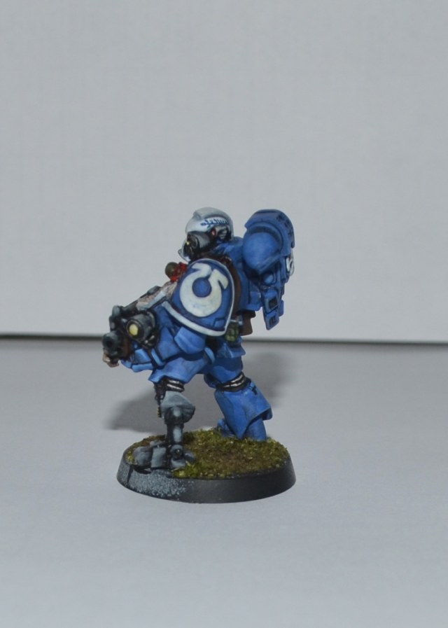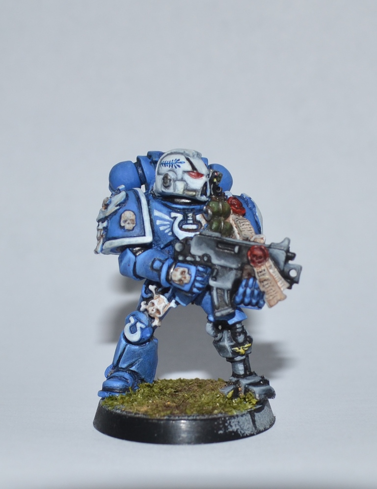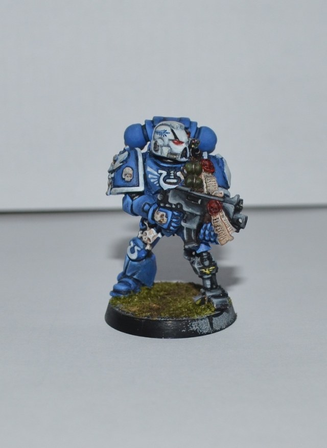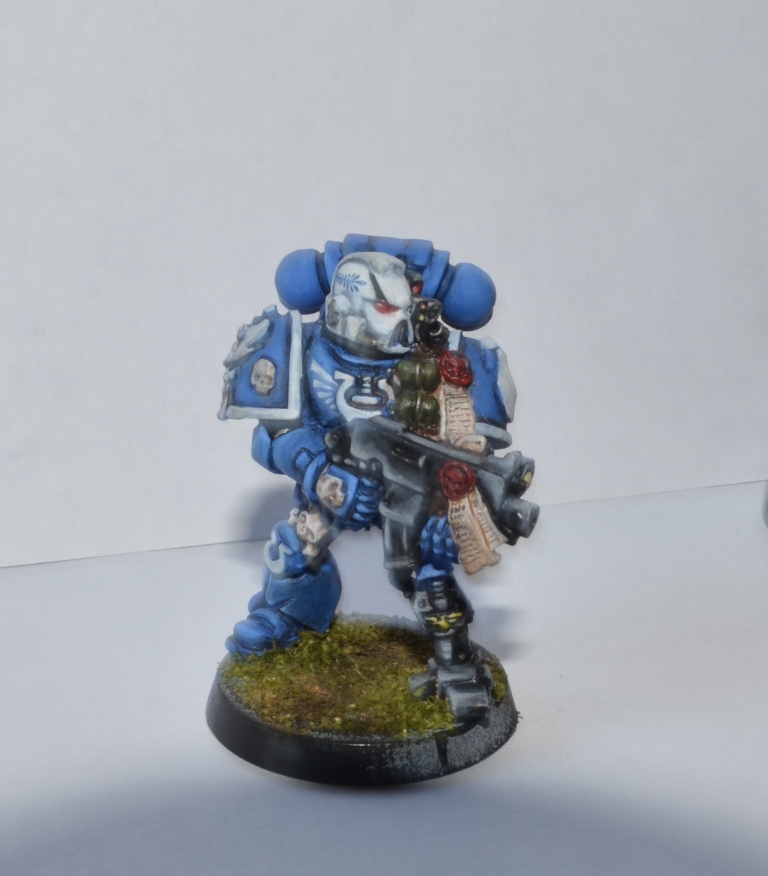 Итак, Вашему вниманию представляется 1 из 4 окрашеных космических десантников. Окрашивался кистью акрилом Цитадель, Звезда и Ревелл, трава от Арми пэйтнера. Что получилось судить вам. Работой я не очень доволен - хотя у металлических миниатюр есть душа))).