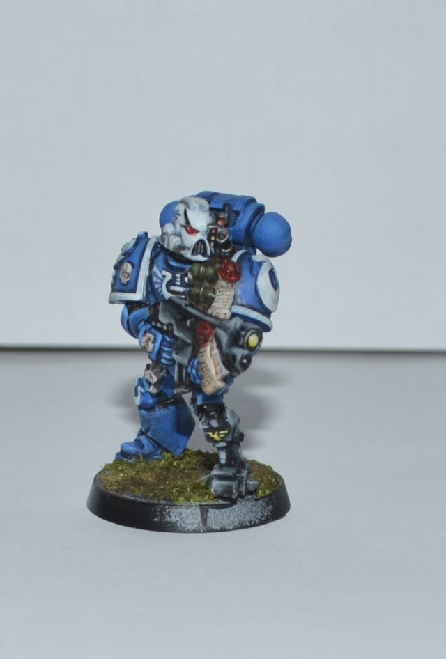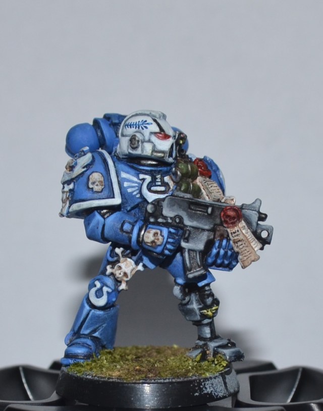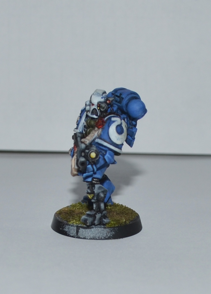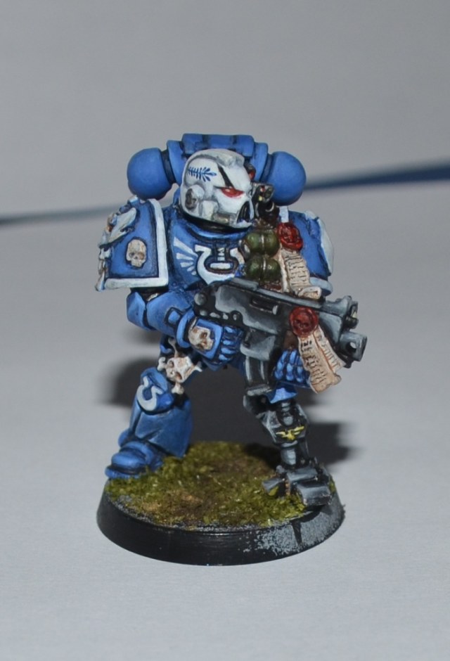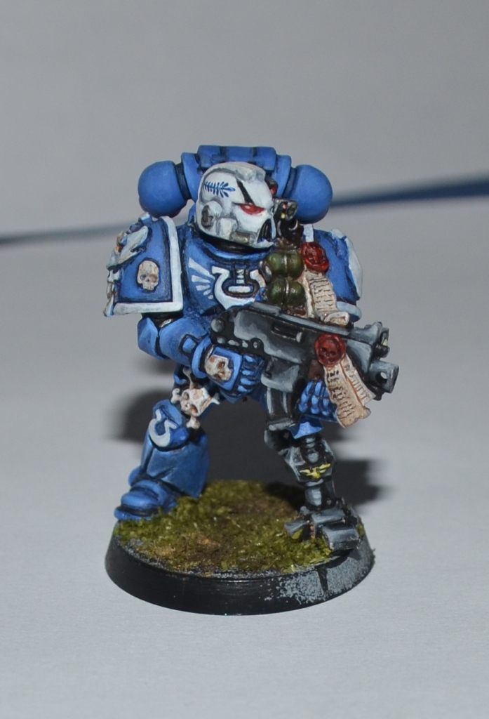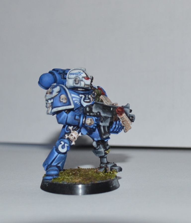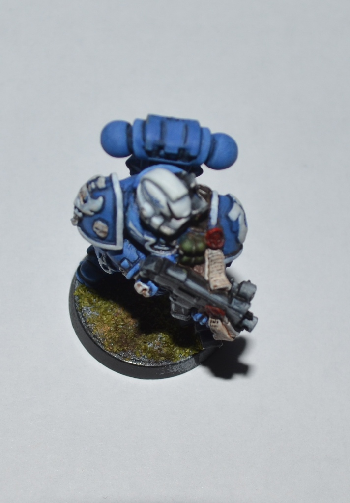 Итак, Вашему вниманию представляется 1 из 4 окрашеных космических десантников. Окрашивался кистью акрилом Цитадель, Звезда и Ревелл, трава от Арми пэйтнера. Что получилось судить вам. Работой я не очень доволен - хотя у металлических миниатюр есть душа))).
