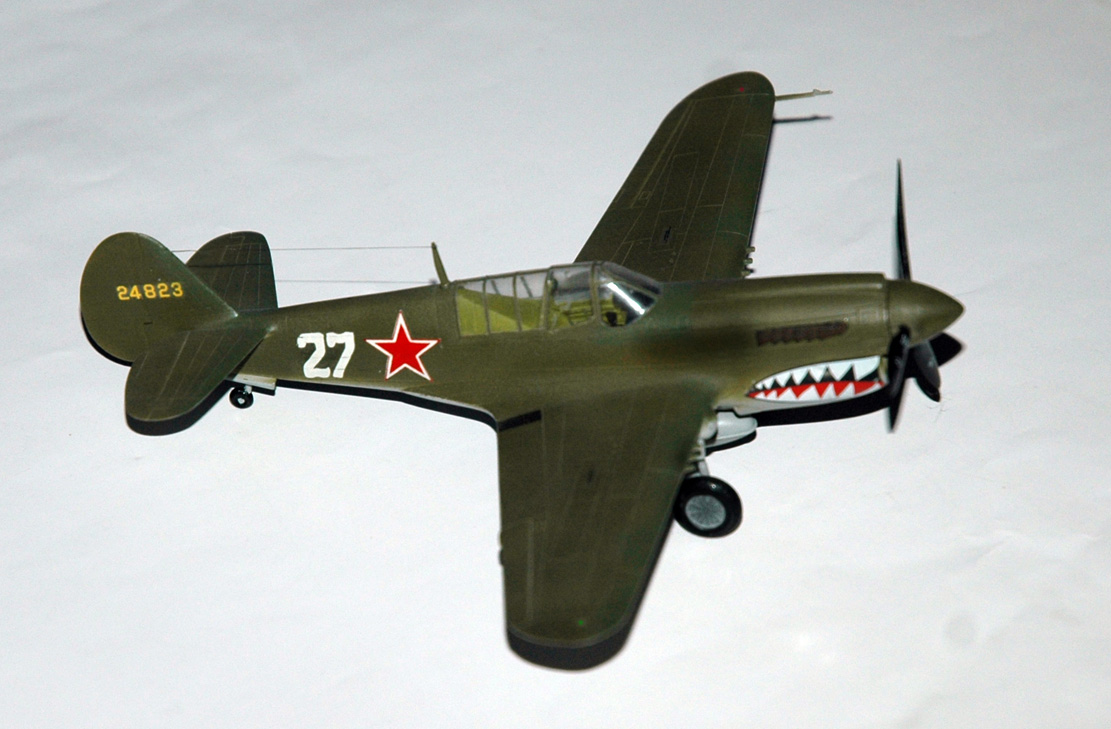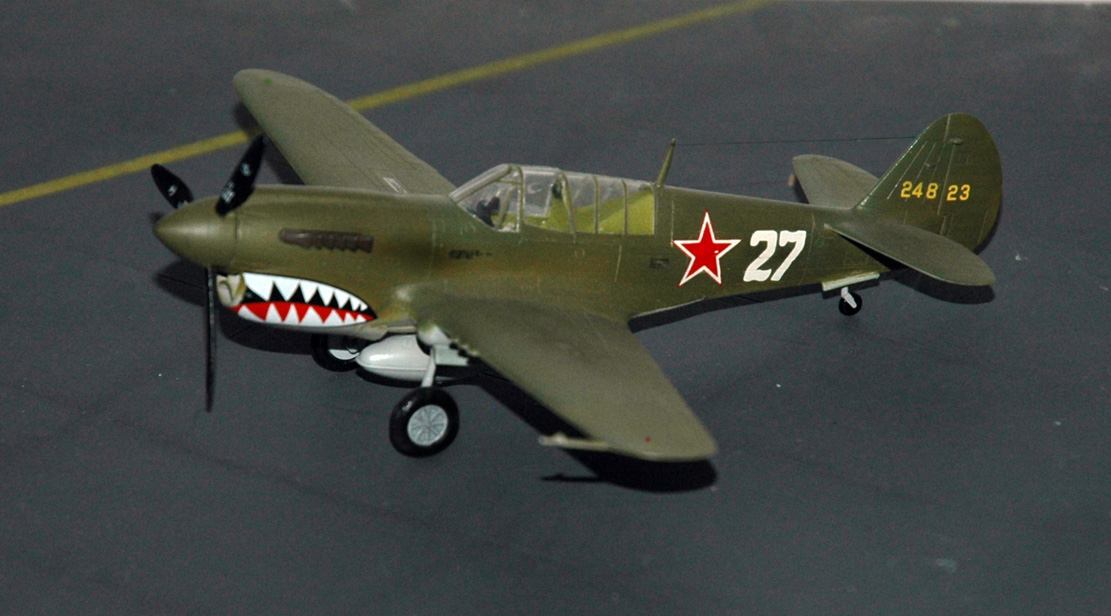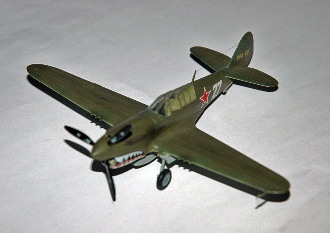 Сразу же прошу прощения у тех, кто радеет за точность исторической привязки. Данную модель делал, как образ Советского Вархаука с акульей пастью, так что и БН, и принадлежность борта определенному летчику не соблюдены.