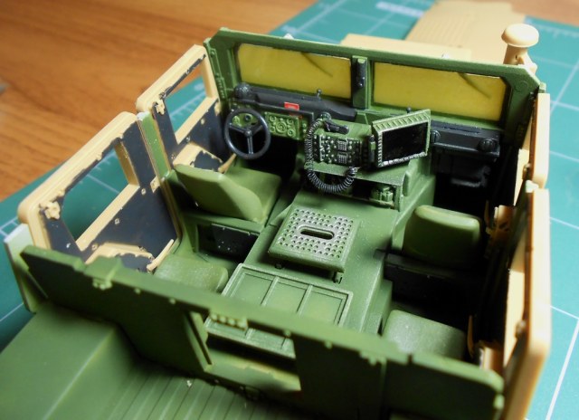 Поскольку через стекла интерьер совсем не видно я решил его только окрасить и слегка пройтись сухой кистью, остального просто не будет видно.