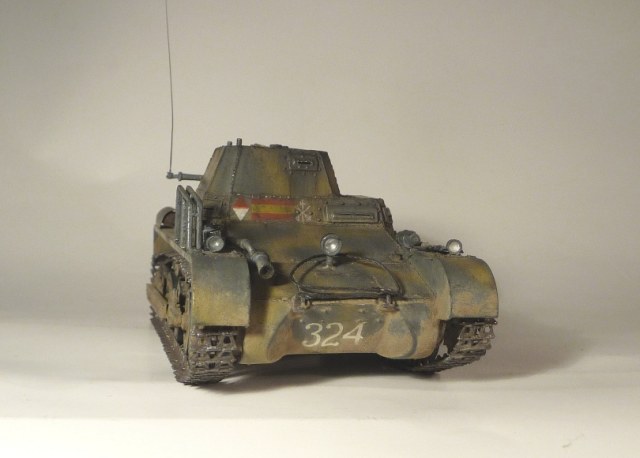 Документального подтверждения такому камуфляжу я не нашел.Война в Испании не так освещалась пропагандистскими службами обеих сторон,тем более в цветных фото.Поверил производителю.На картинках похожие камуфляжи машин на базе единички.