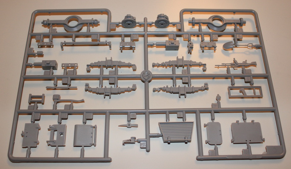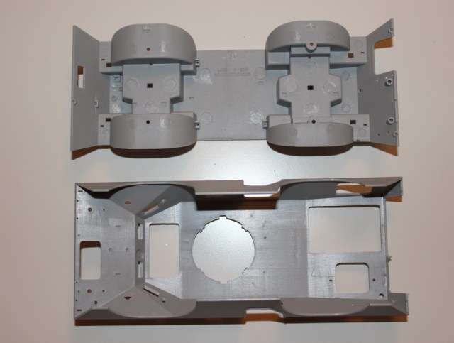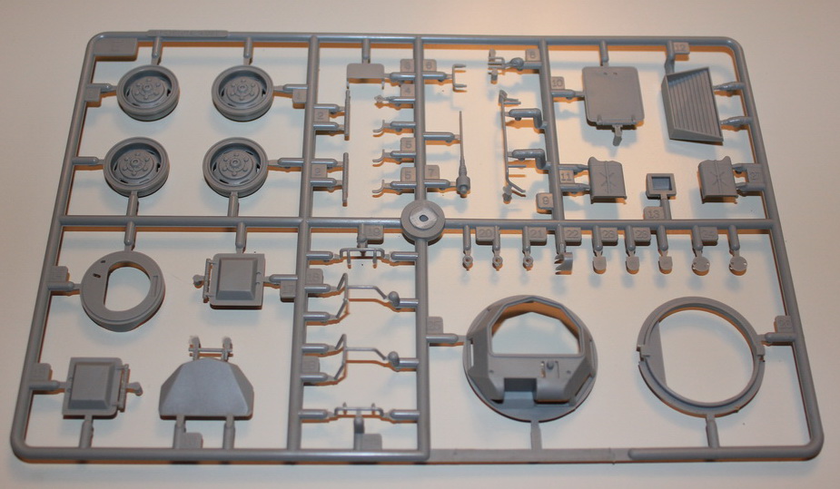 Деталировка модели не плохая, присутствует небольшой облой на нескольких деталях, утяжины не обнаружины, а следы толкателей присутствуют только на внутренних частях, т.е. тех, которые после сборки будут не видны. Не очень понравились колеса, «невнятный» протектор, отсутствие надписей (хотя не знаю об их наличие на прототипе), и как показалось на первый взгляд, не масштабность , а именно, показались меньше, чем смотрятся на фото прототипа..