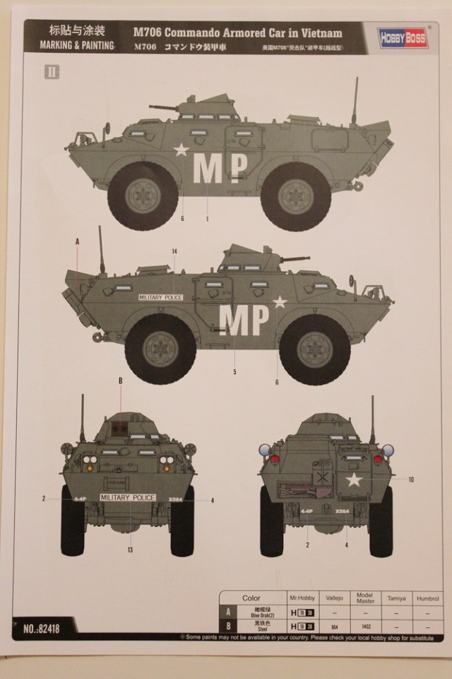 Обзора на данный набор на «каропке» еще не было, по крайней мере на моей памяти, поэтому представляю Вашему вниманию небольшой обзор американского БТР времен вьетнамской войны М706 от HobbyBoss.