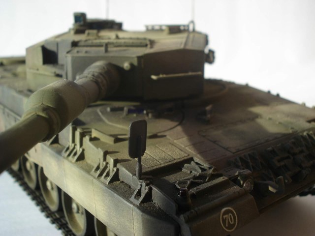 На мелких деталях видны неубранные литьевые швы. Шов на стволе режет глаз. Окрашено неплохо, но смывку не видно вообще, поэтому рельеф не выделяется. Дека на левом переднем крыле криво наклеена. Гусеницы на вид абсолютно резиновые, явно недоработанные. Вроде и приложено старание к модели, но местами сквозит какая-то небрежность и неаккуратность.