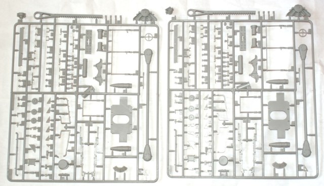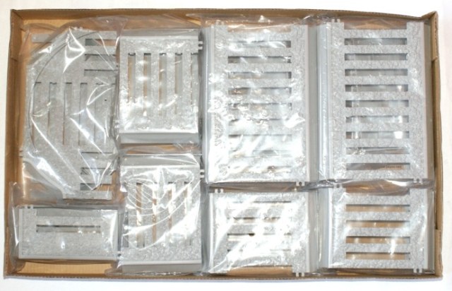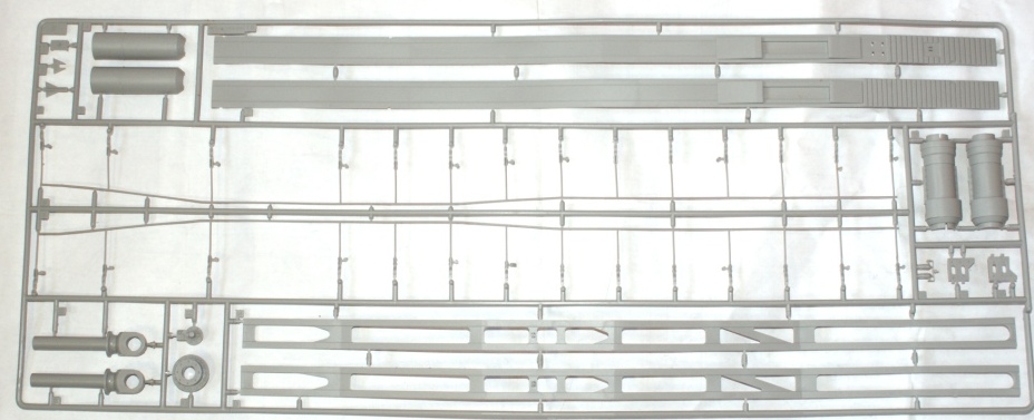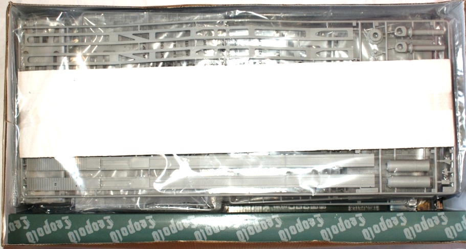 В коробке находится еще 3 коробки меньших размеров, 12 пакетов с литниками которых в общей сложности всего 25шт. В одной коробке лежит основа для Ж/д полотна в другой травленка и декаль и в третьей боковые детали станины самого орудия. Пластик самый обычный серый приятный на ощуп. Утяжины, облой и прочее не наблюдается, стыкуемость пока неизвестна. Некоторые литники с хрупкими деталями завернуты в поролон или кортон для безопасности.