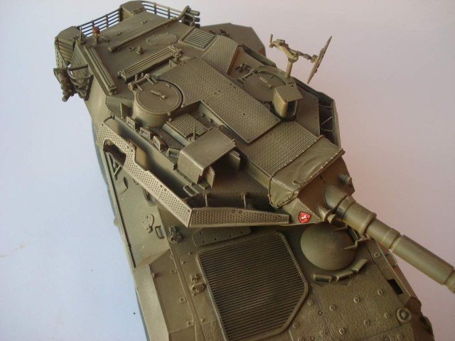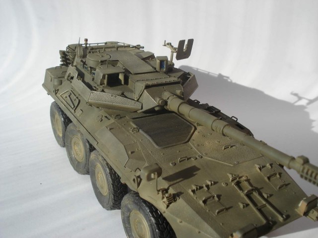 У меня у самого такой КЕНТАВР - модель по сборке достаточно проблематичная (тот же Страйкер от Трумпа по-приятнее будет), особенно в в сборке фар с непонятным переплетением травления - чистую линзу фары оставить там по-моему нереально...И про подножки - гнуть их сущая мука. Поэтому ставлю за модель 5, за окрас тоже 5, а мат часть не соблюдена самим производителем (по окрасу на оригинальных фото он относительно однообразен. Если автор будет не против, то размещу несколько фото своего Кентавра, но за его зверя от меня будет высший балл: