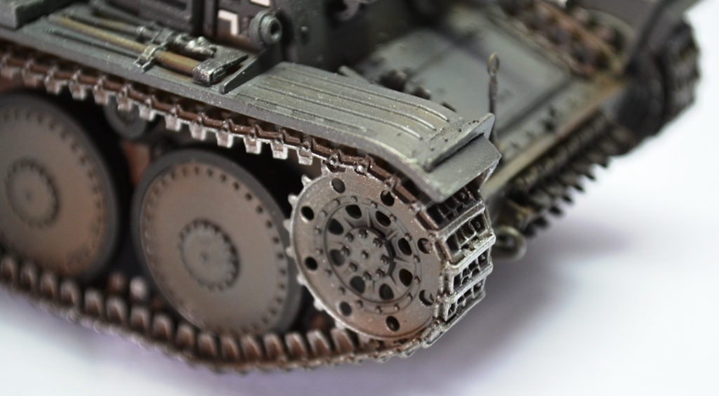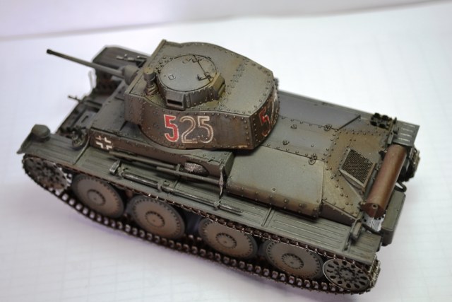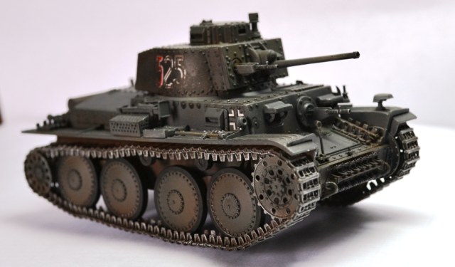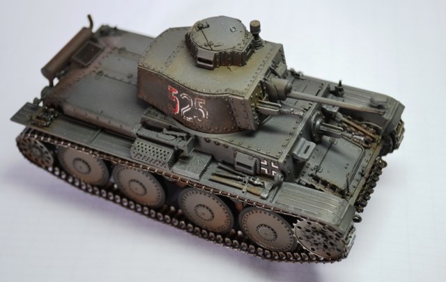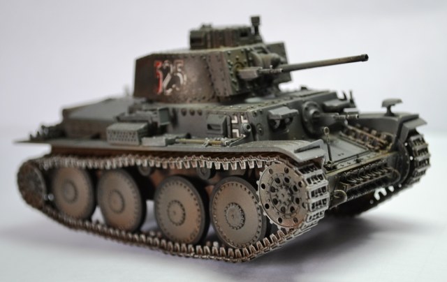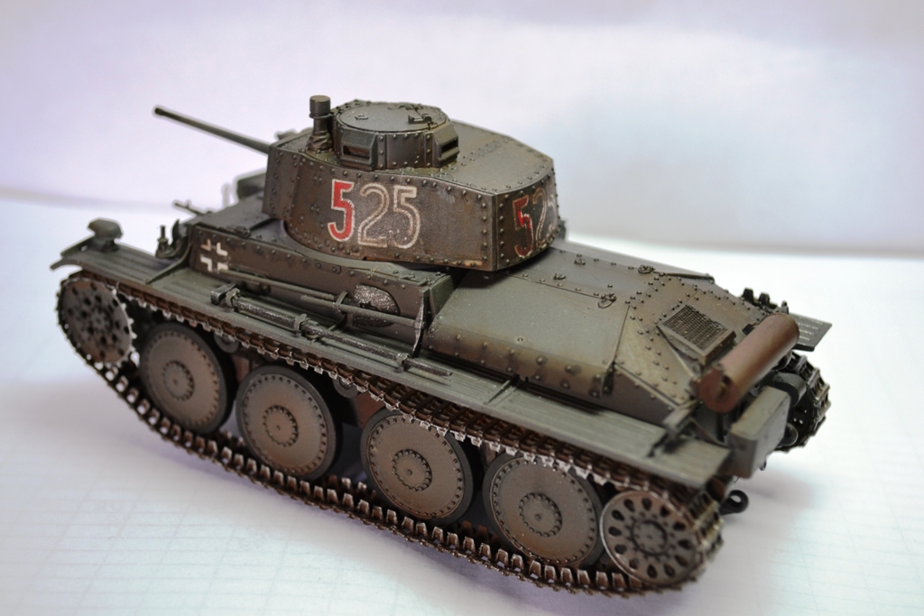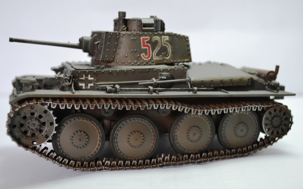 Давно собрал, никак не доходили руки выложить. Модель собирал из коробки, ни каких добавлений и изменений, тем более, что набор показался мне очень богатым, хорошая деталировка, травление, большое количество декалей, подробная инструкция. Единственное, что заставило попотеть, это траки, которые позиционируются как рабочие, конечно при наличии известной доли терпения и времени, их таковыми можно сделать, но у меня не вышло, несмотря на то, что мысль о том, что спешка злейший враг моделиста не покидала меня ни на минуту. В итоге модель была собрана, какая есть, окрашена, оттонироврна, смыта и сфотографирована, результат на Ваш суд.