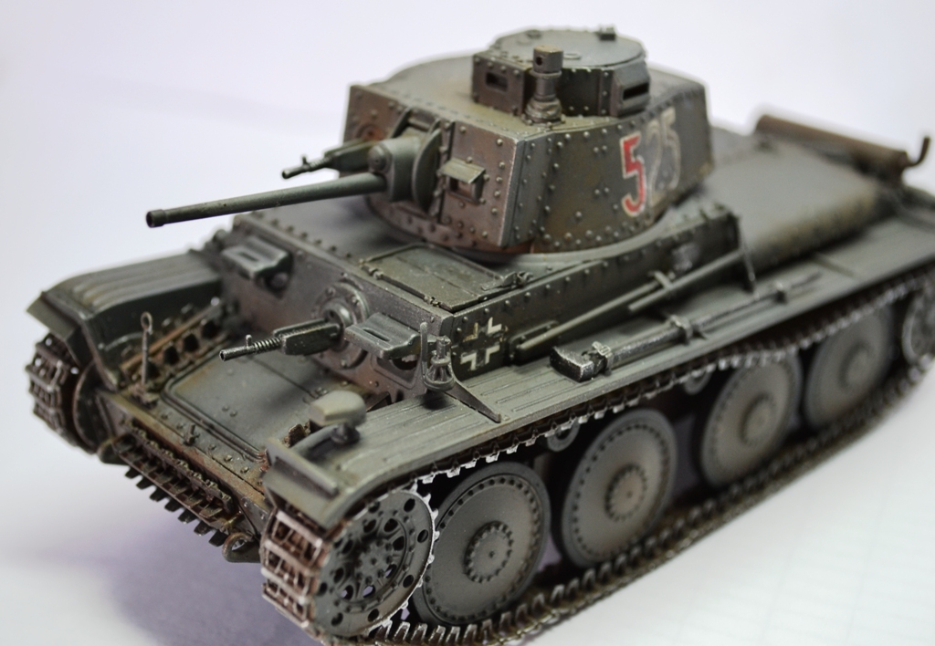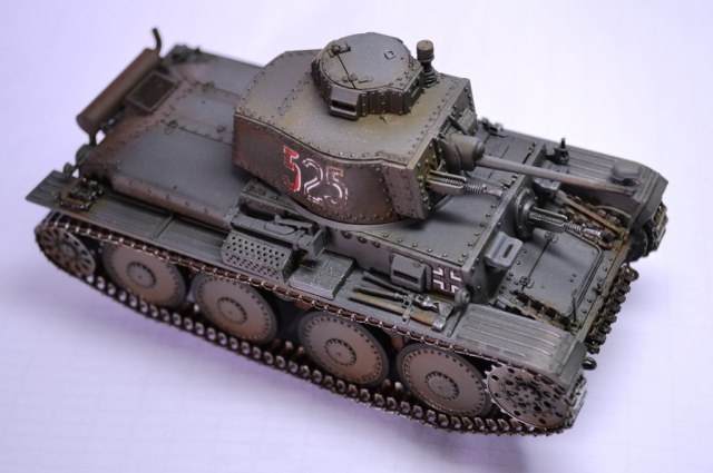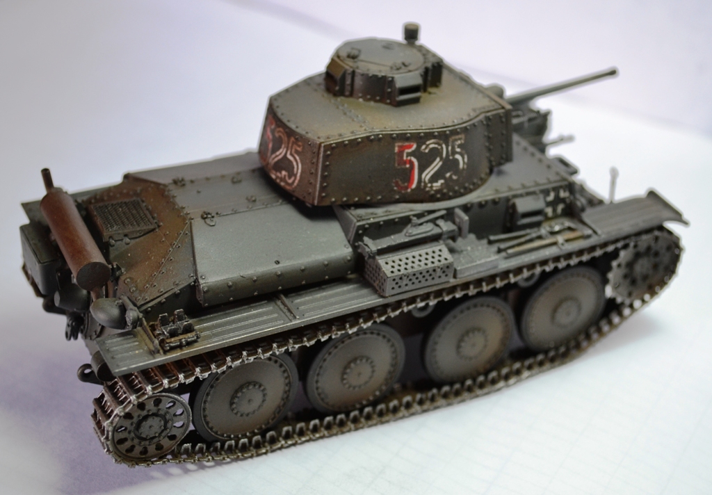 К сожалению не могу разделить восторженные отзывы по модели. Косяки уже перечислили, добавлю сюда еще "пустой" боковой смотровой прибор водителя и странное положение гусянки по левому борту. И с цветом что то действительно не понятно, но возможно это так снято просто. В целом чех гдк то на 4 балла.