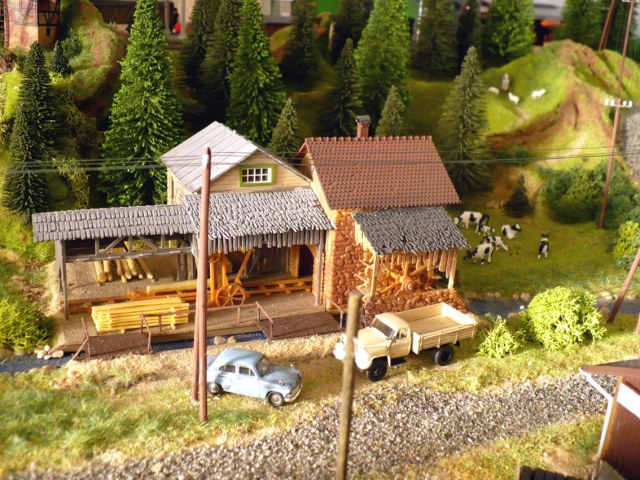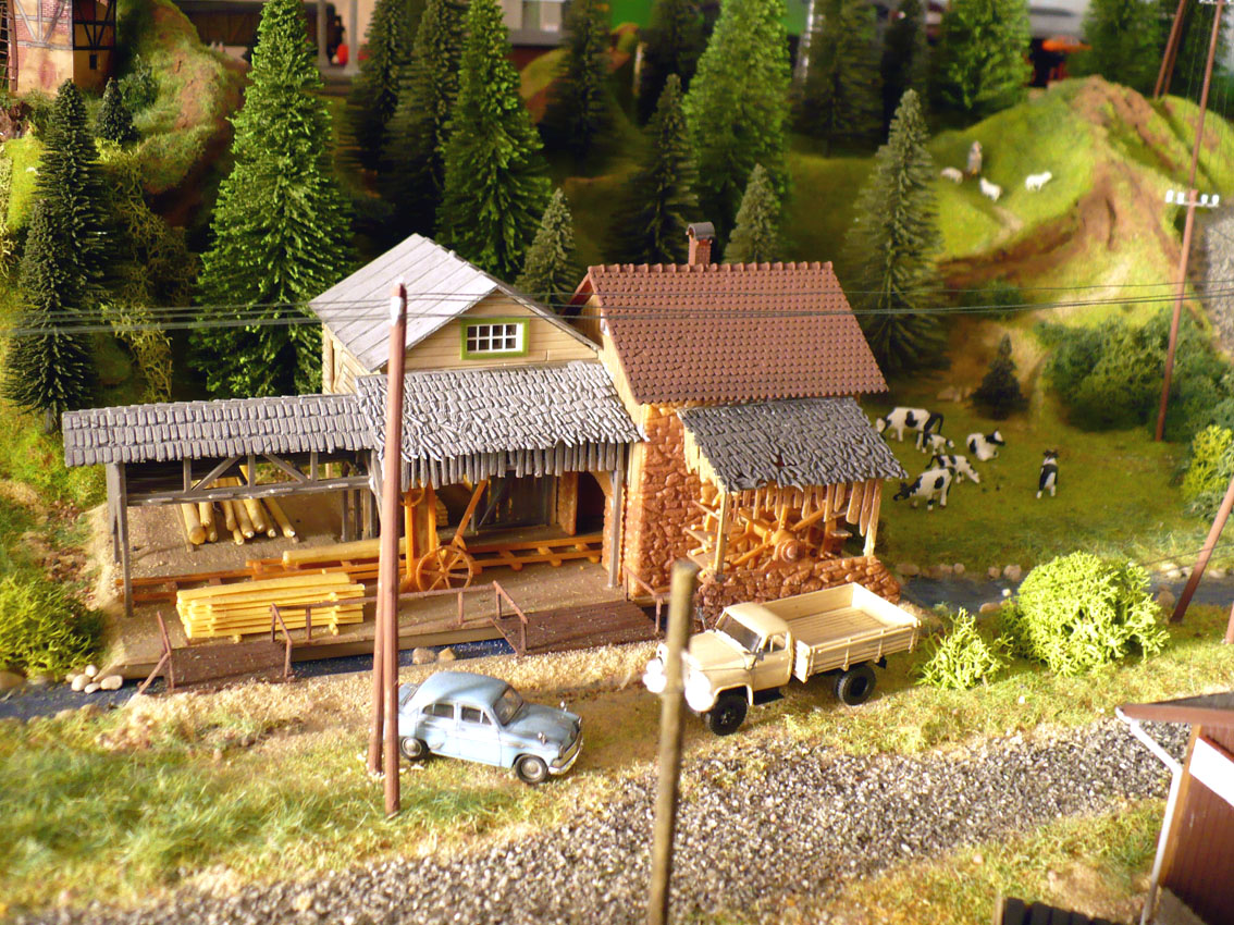 очень красиво, детали очень красят диораму - типа заготовки сена, или собака вынюхивающая чего-то в траве, а вот овцы с пастухом у депо - это перебор)