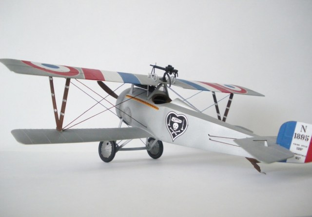 За окраску, конечно, пятерочка, тут ничего не скажешь, а вот все остальное увы и ах. На вид как 72-й, в 32-м, конечно, можно было много чего накрутить, а тут даже расчалок на центральных стойках не сделано спереди. Ну и матчасть критики не выдерживает. N 1895 Нюнжессера - известный борт, по нему куча фоток, посмотрите вот здесь хотя бы есть несколько http://albindenis.free.fr/Site_escadrille/escadrille065.htm (ближе к концу страницы). Я насчет пулемета на крыле не уверен далеко, кстати. Не видал фоток с ним.