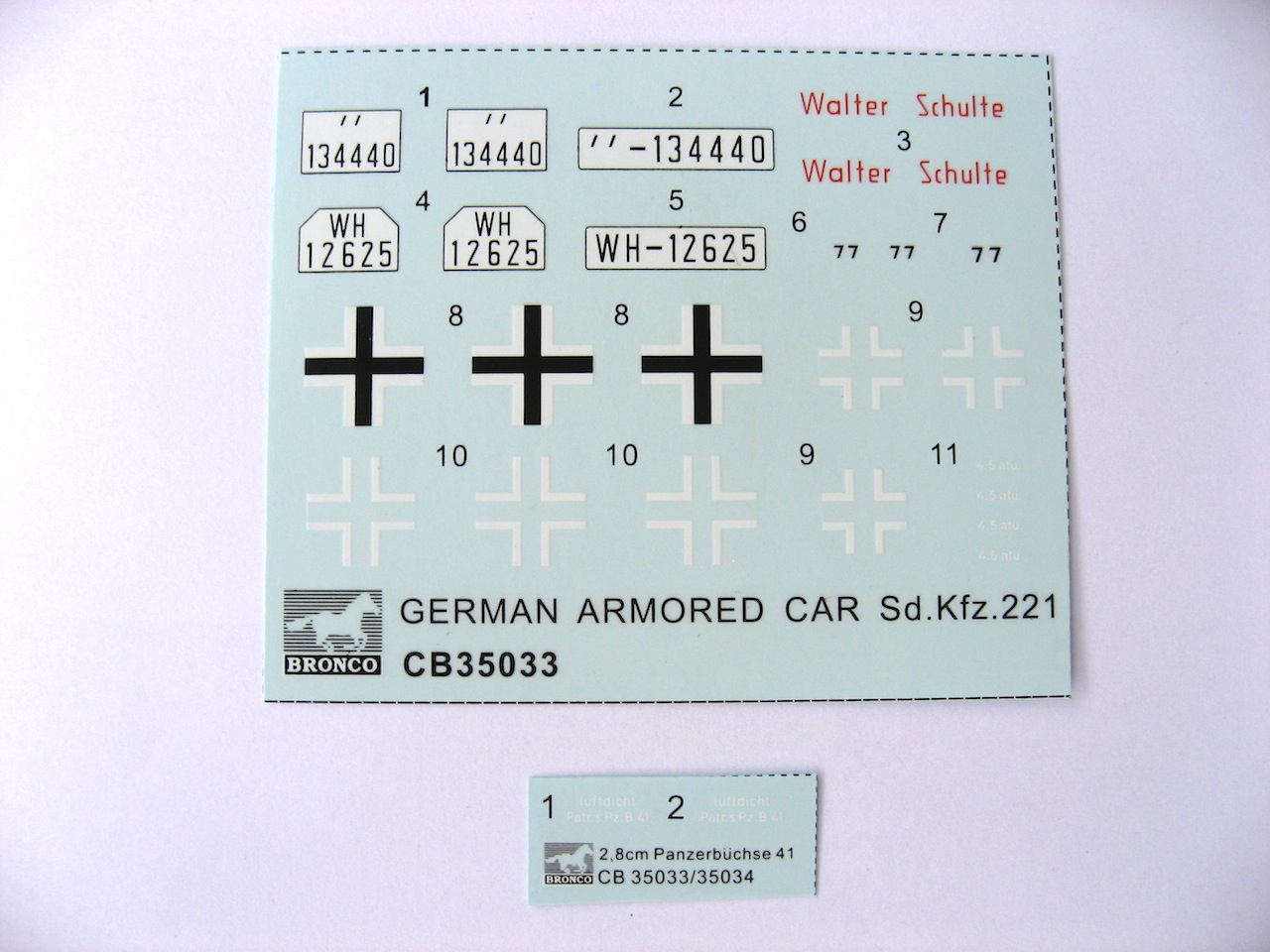 221-й с противотанковым ружьем. Двенадцать литников с деталями отличного качества. Плата фототравления, металлические пружины для ходовой. Два вида башни, с ружьем и без. Четыре варианта покраски. Очень подробный интерьер. Покупал набор в прошлом году за 1400 рублей.