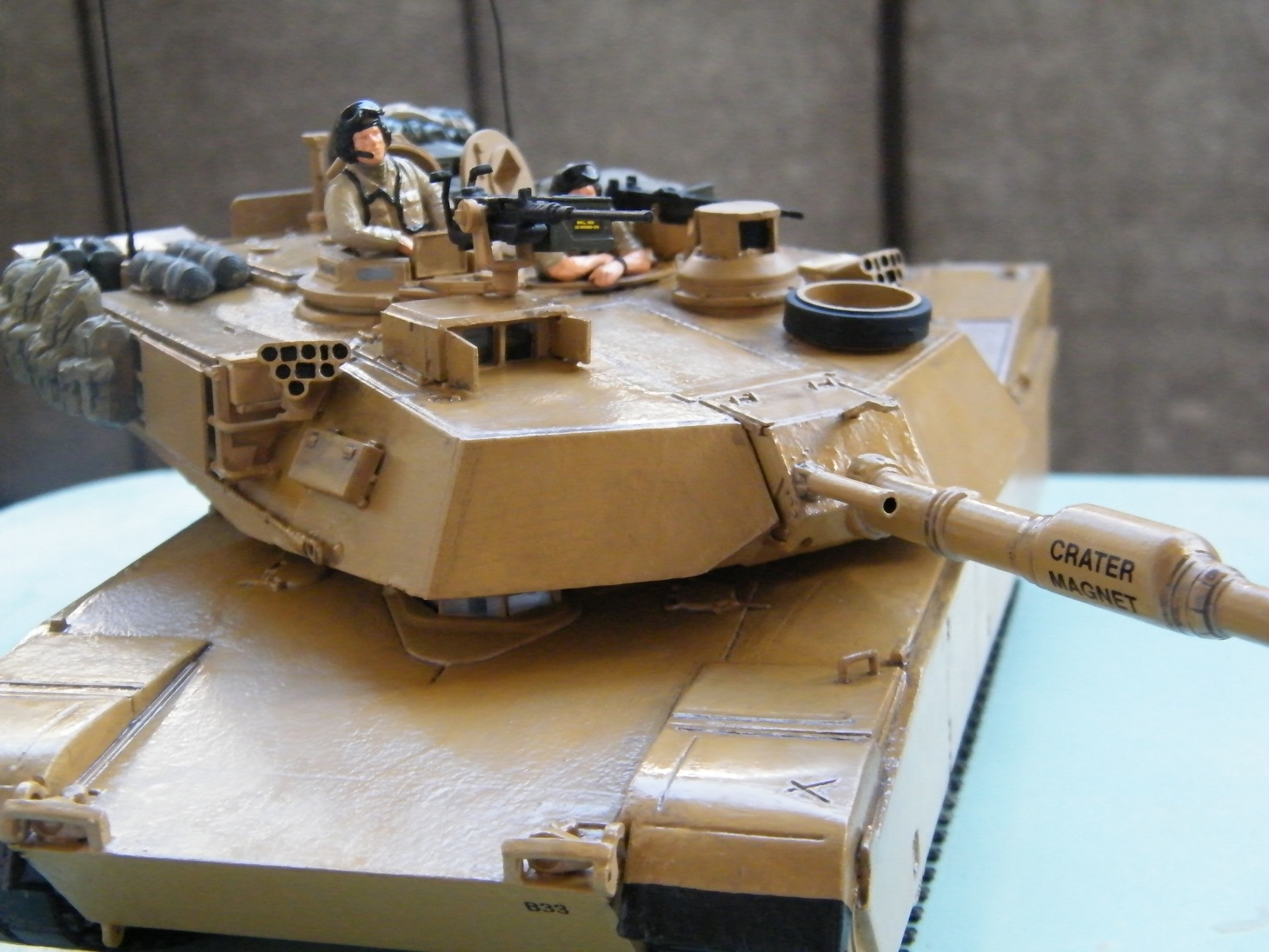 Начну по традиции с матчасти. А2 изображен неплохо, но тут ему делать нечего. Вы взяли довольно известную машину CRATER MAGNET -а это М1А1, принадлежащий морской пехоте. А мортирки у вас армейские. Весь обвес армейский. а декали от морской пехоты. Антенны неверные. Оптика отвратительная. Маска орудия абсолютно плоская. Про мелочи вроде проводки говорить не буду. Во избежание.