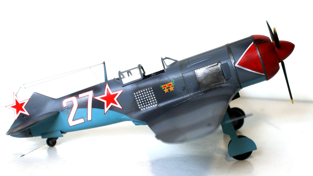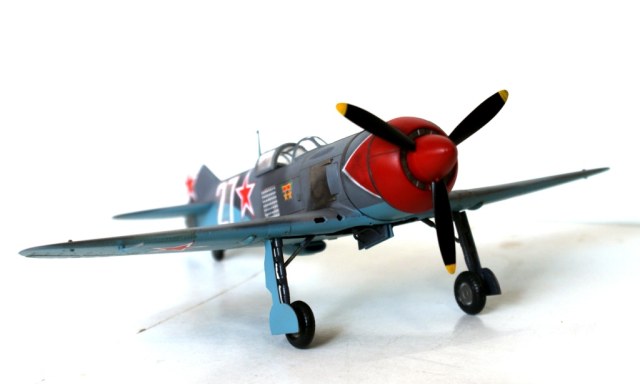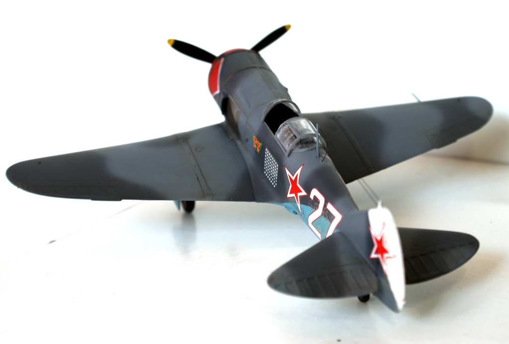 Ты же знаешь, что я делал именно эту модель и даже в этом окрасе. Мог бы посмотреть и не повторять моих ошибок. Молодец, что сделал правильное белое поле на киле (у меня вот оно не получилось). Максим, но вот обтекатели на капотах двигателя родные-совсем не в дугу... Я ставил с Ла-5ФН от фирмы "Звезда", в 48м масштабе. Зачем ты оставил родные обтекатели? В общем, посмотри, что я сделал с этой моделью вот тут: http://karopka.ru/community/user/8899/?MODEL=261596