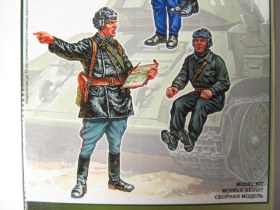 "Поздних" танкистов РККА я встречал и в пластике, и в смоле, а вот ранних, довоенных - нет. Похоже, этот набор безальтернативный. Косяк производителя: на четырех танкистов только две пистолетных кобуры, а в инструкции указаны все 4.