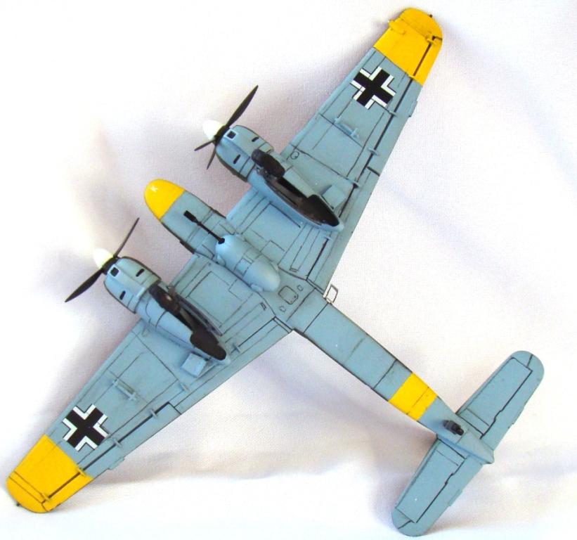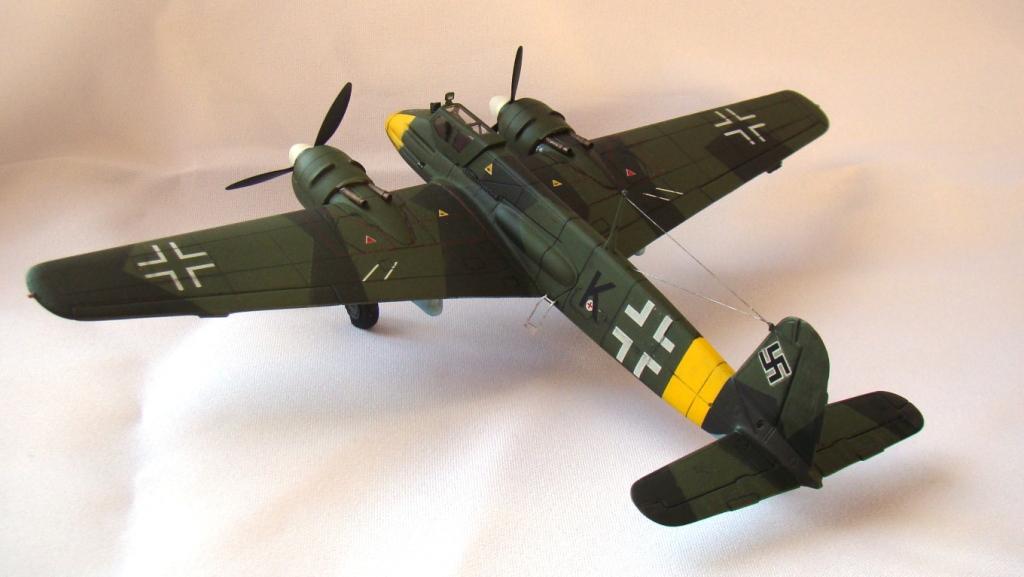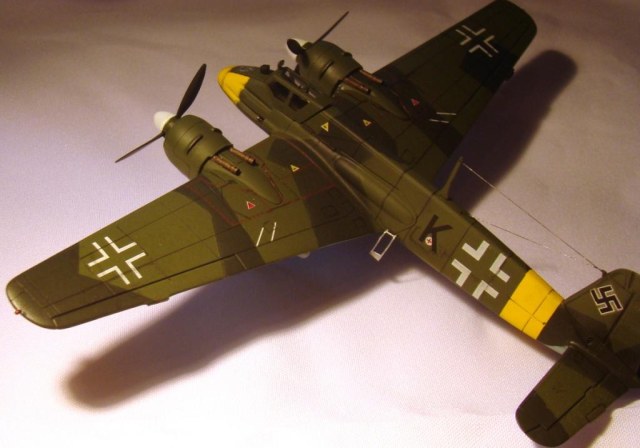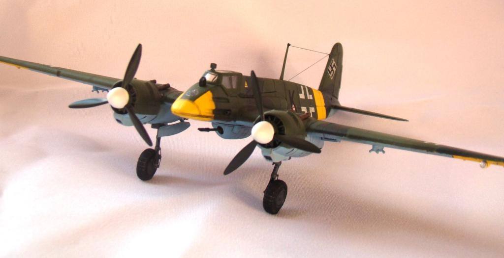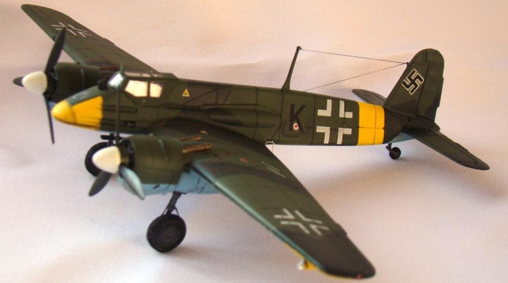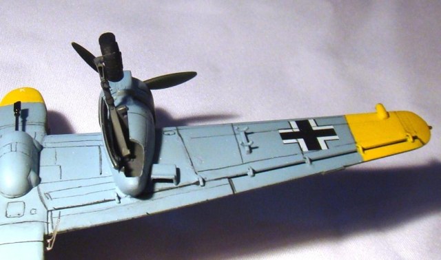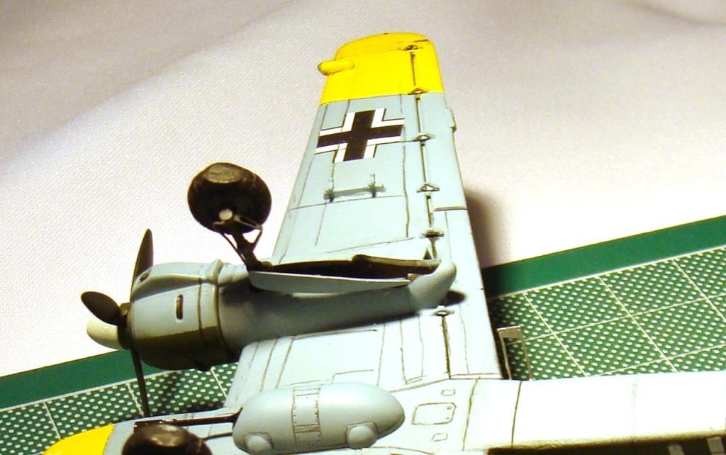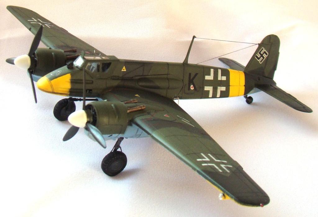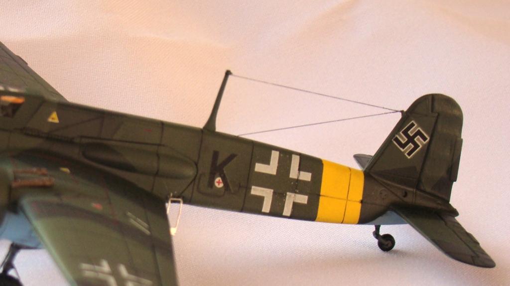 Популярная модель немецкого штурмовика HS-129 от Italeri. При сборке использовал дополнительный набор травления и смолы от чехов Valom. Заменил колеса на смоляные так как на них был рисунок протектора, прицел, травленая приборная доска, ремни, направляющие фонаря, штоки на шасси. От себя довавил БАНО из проволоки, окрашенной в красный и зелёный цвета, с нанесением сверху микроскейловского Kristal Klear, так же сделал фару. Кроме того из проволоки слелал трубки гидравлики на шасси и антенну из мононити. Красил аэрографом, впервые исплользовав частично акановские готовые краски RLM 65, 70, 71, остальное - тамия.